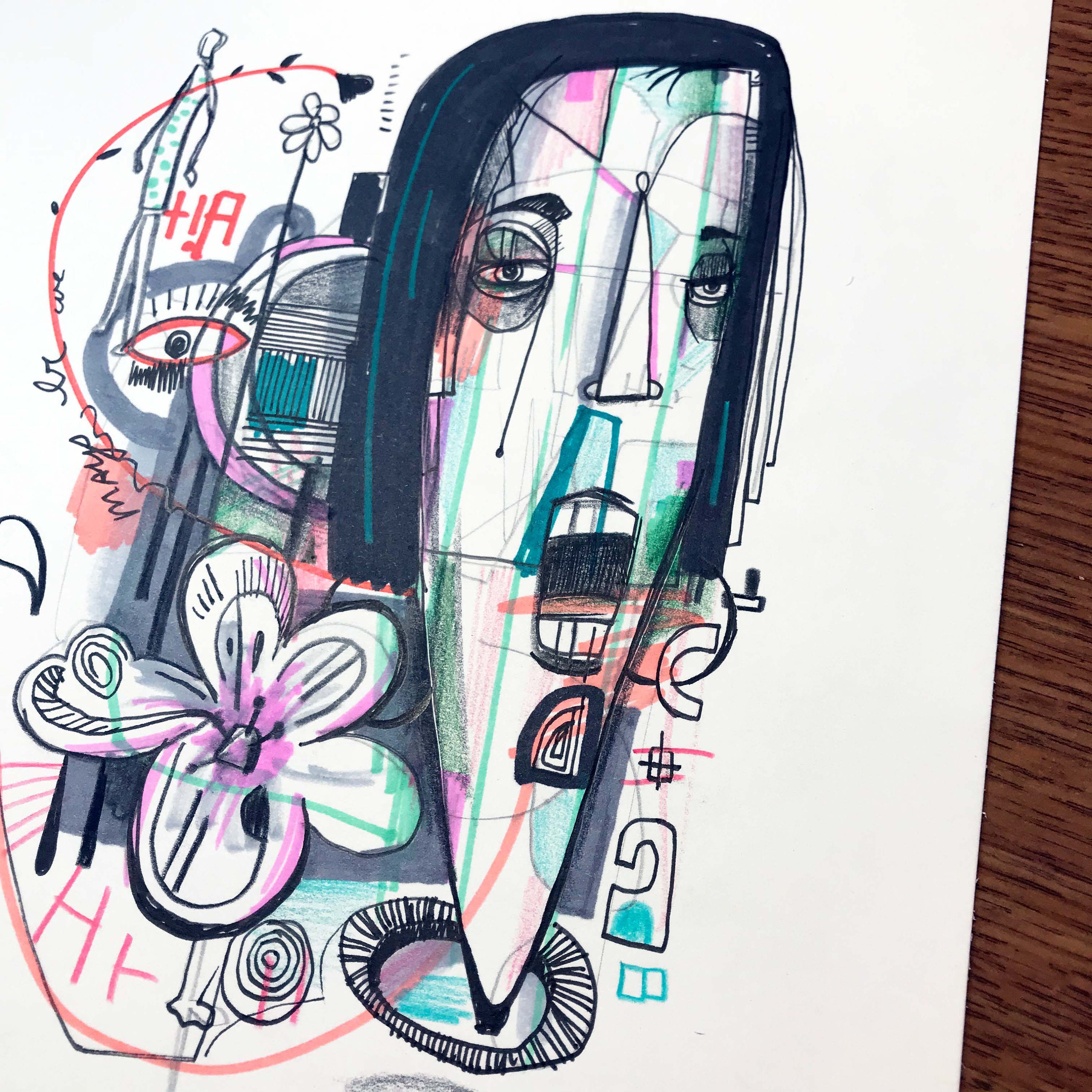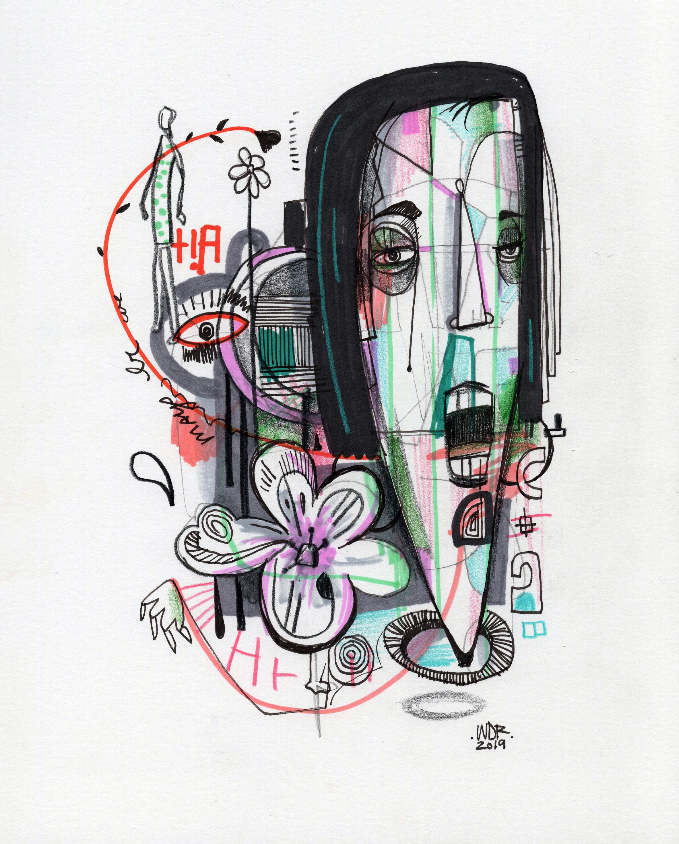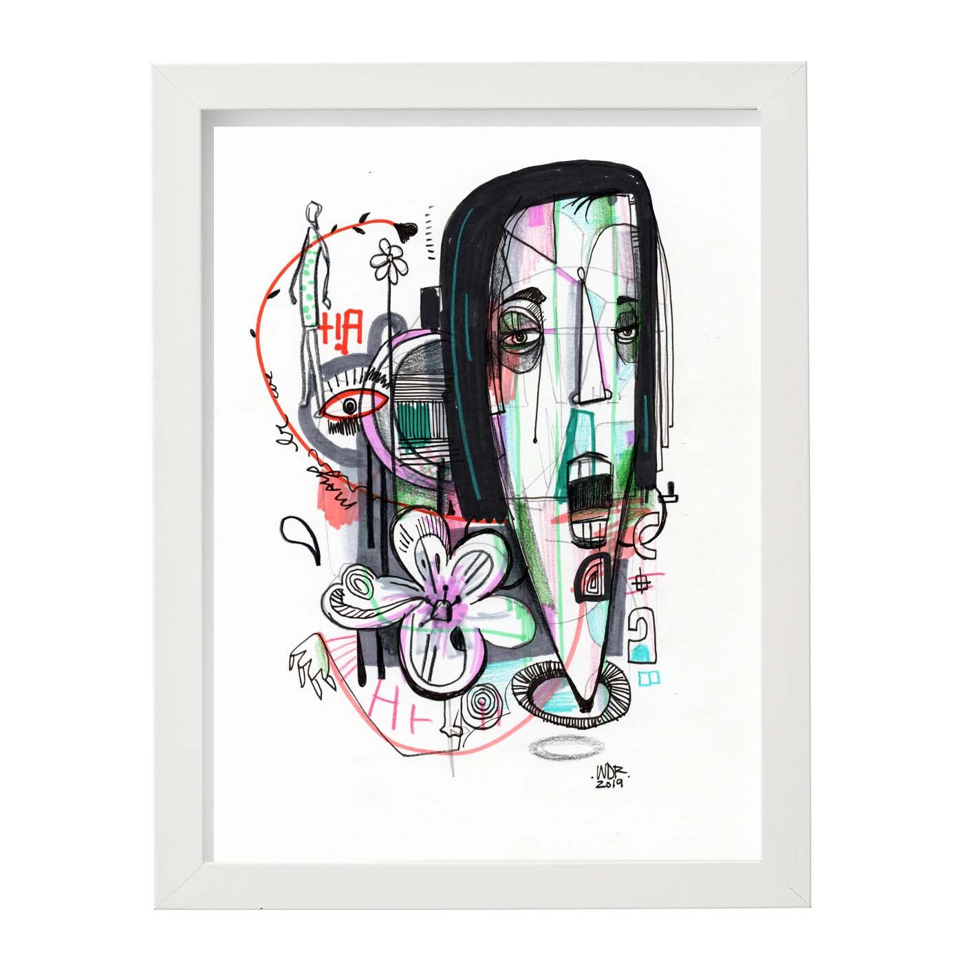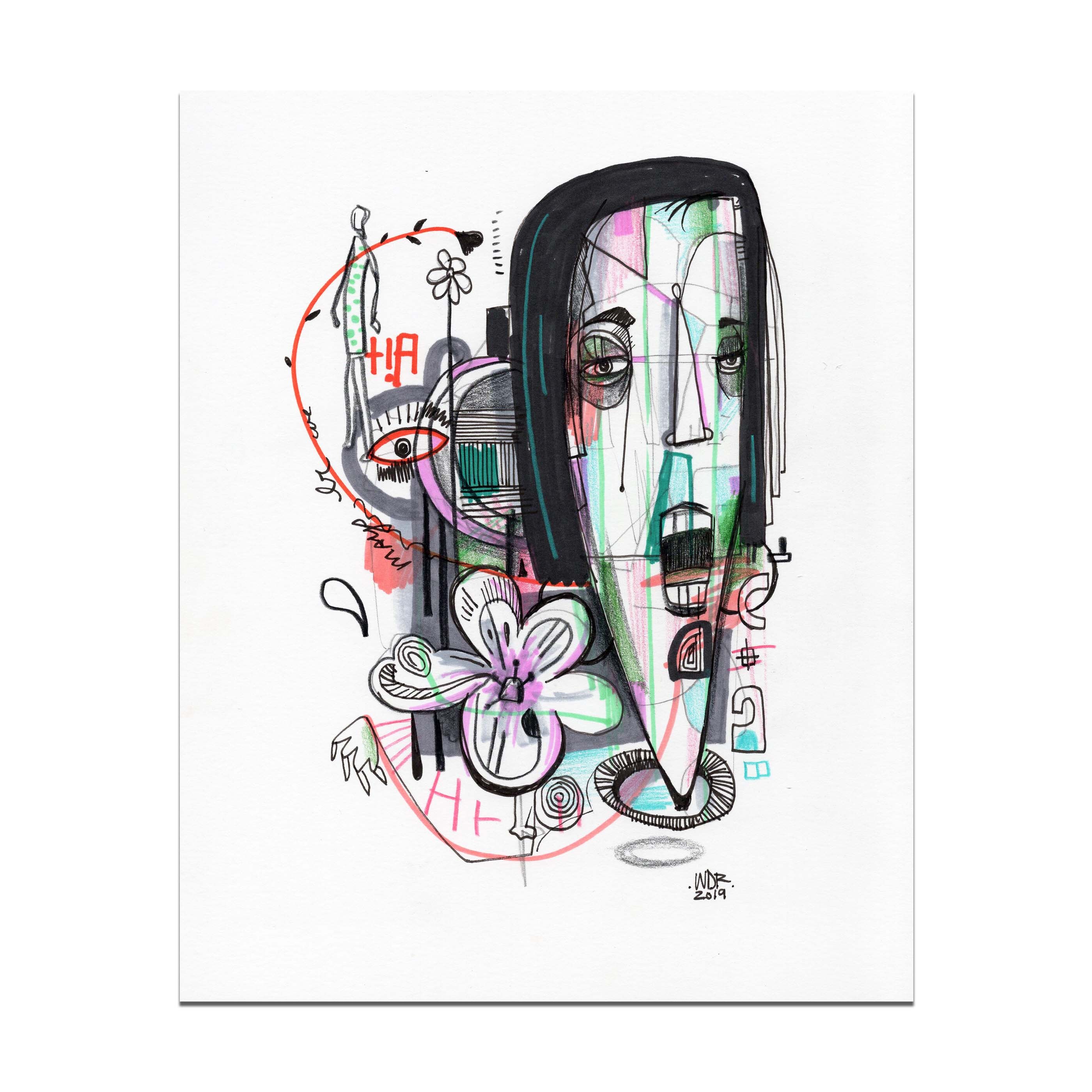 Tia Cia - Original mixed media Illustration on Bristol - 8" x 10" - Original Artwork