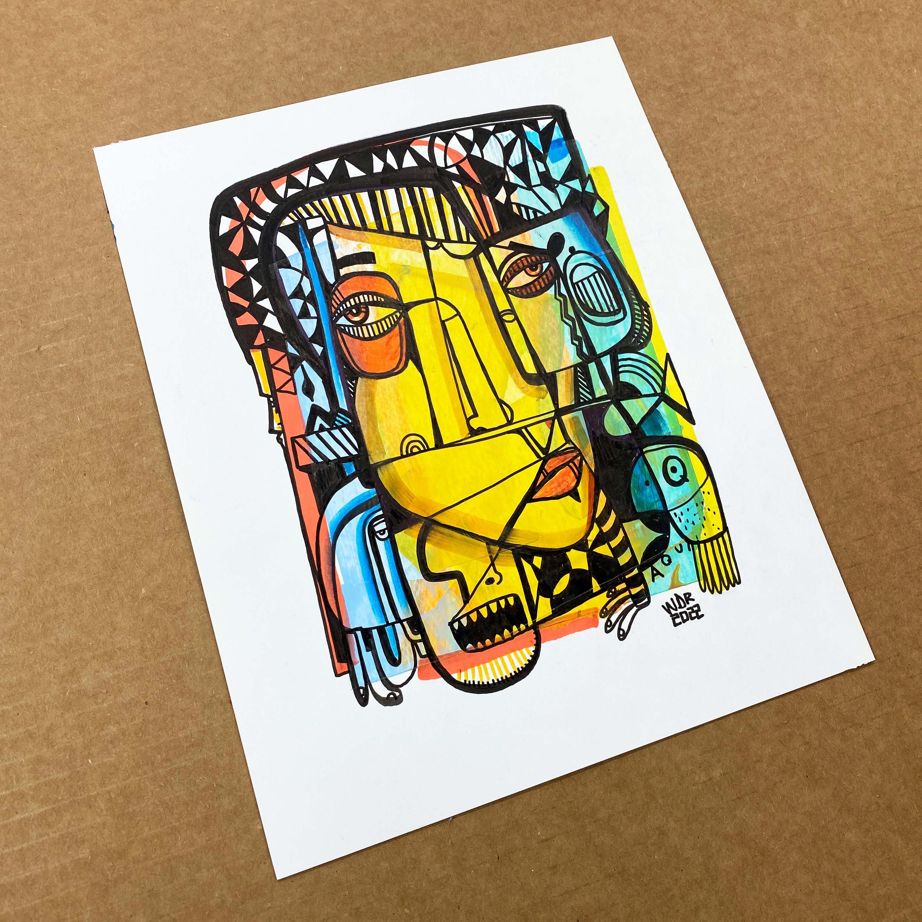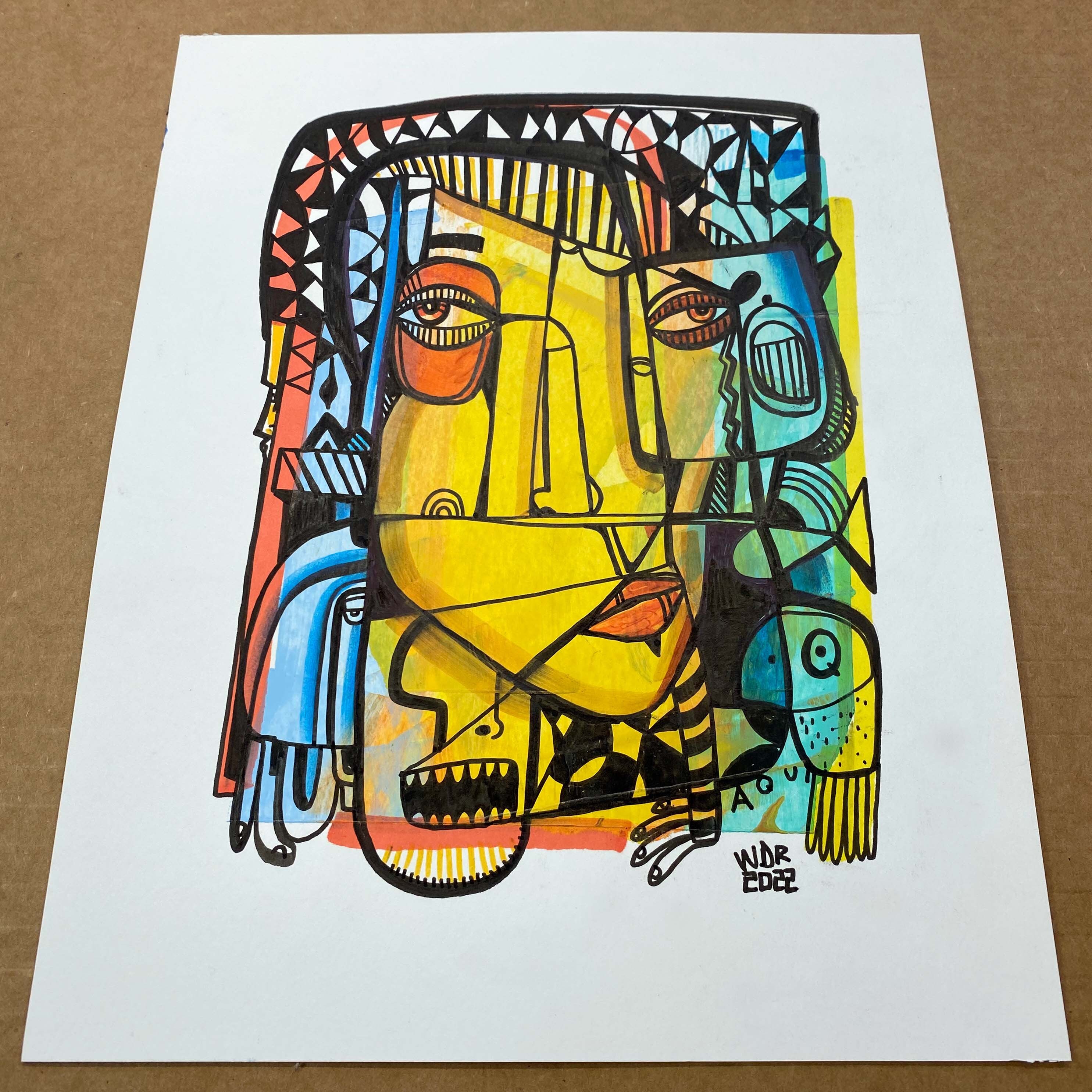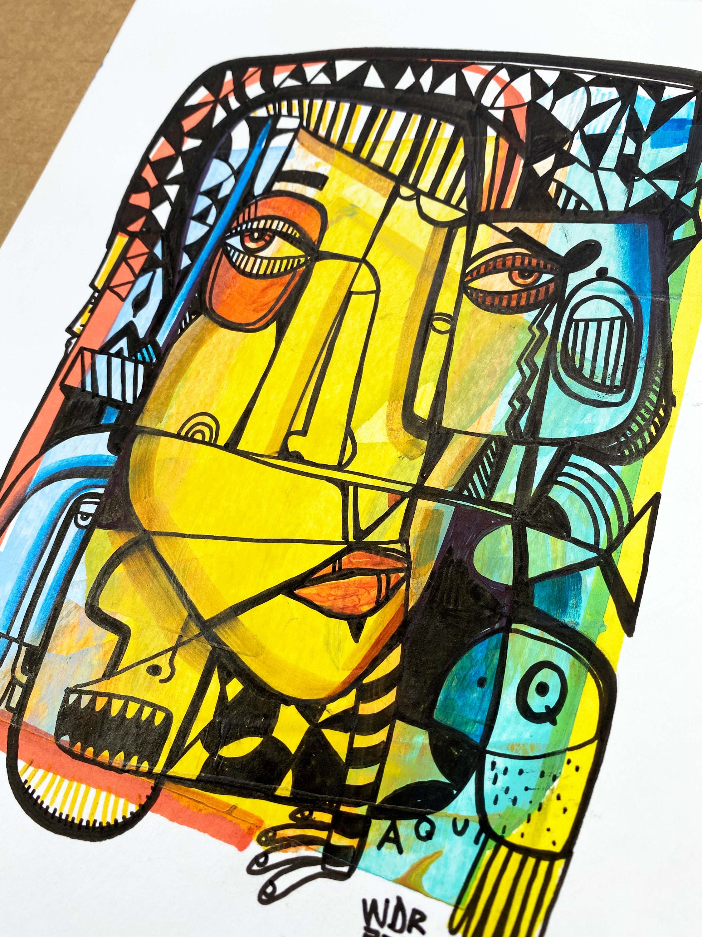Aqua - Original mixed media Illustration on Bristol - 8" x 10" - Original Artwork