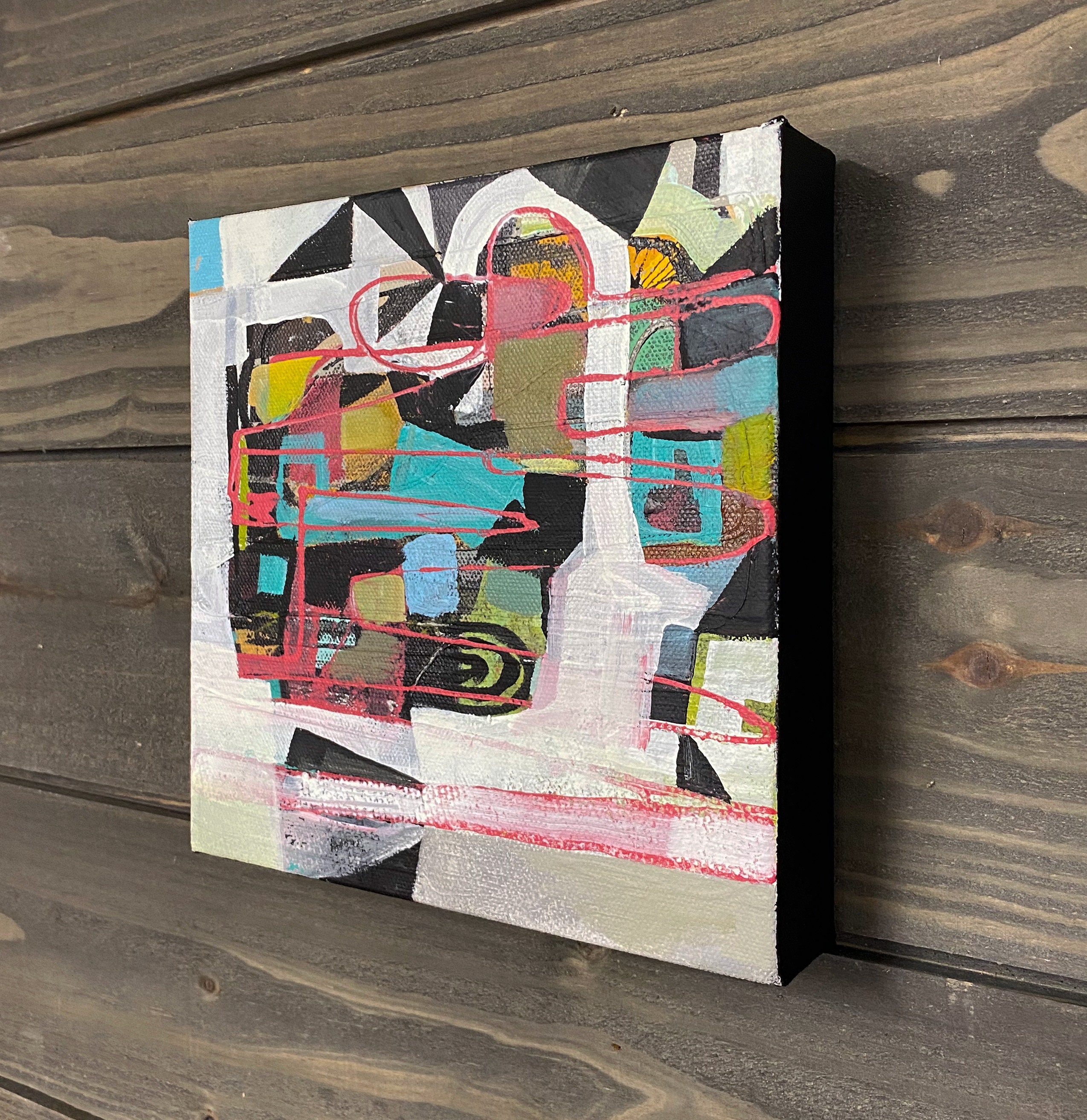 Original mixed media painting on 8" x 8" on canvas