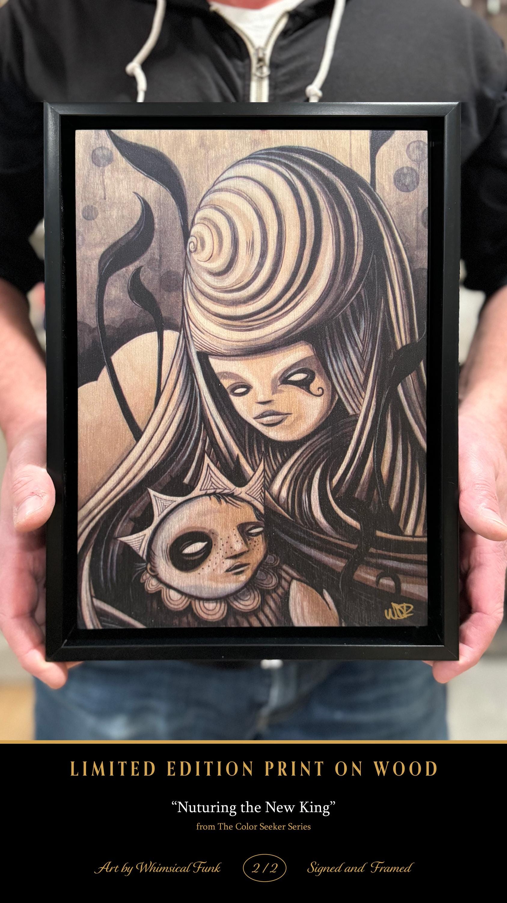 Nuturing the New King - 8x12 Print on Wood - Framed - Signed and Ready to Hang