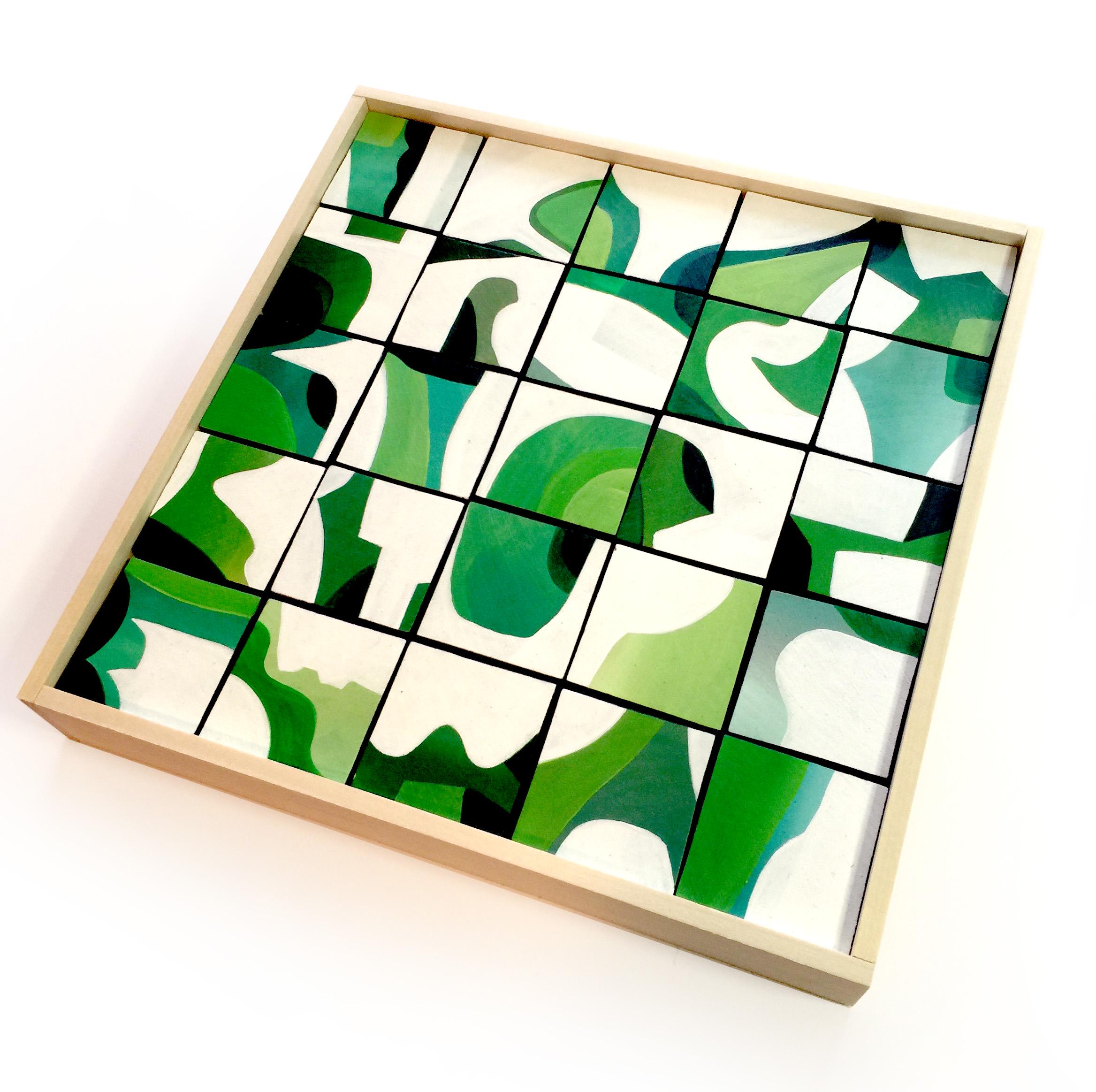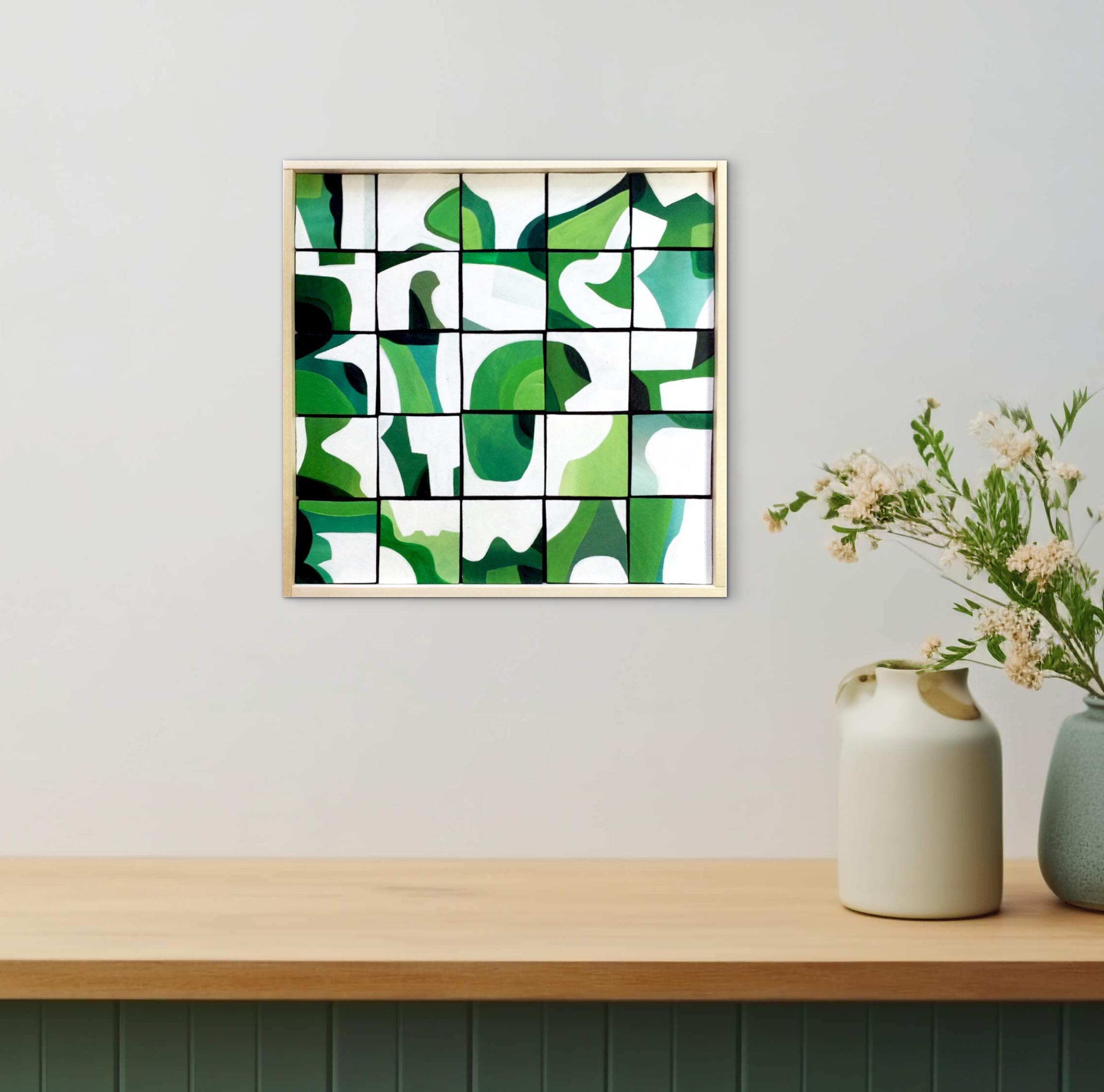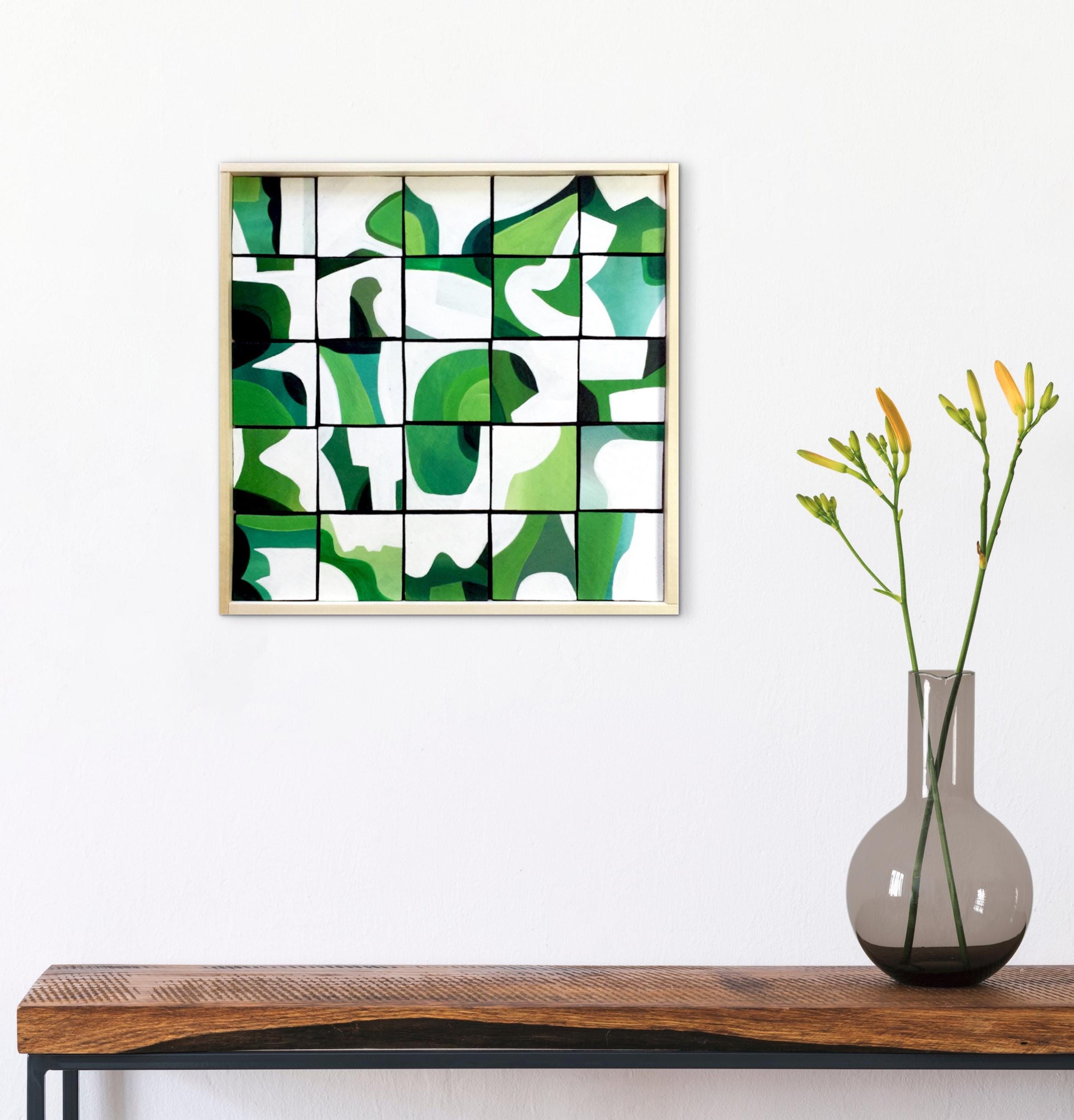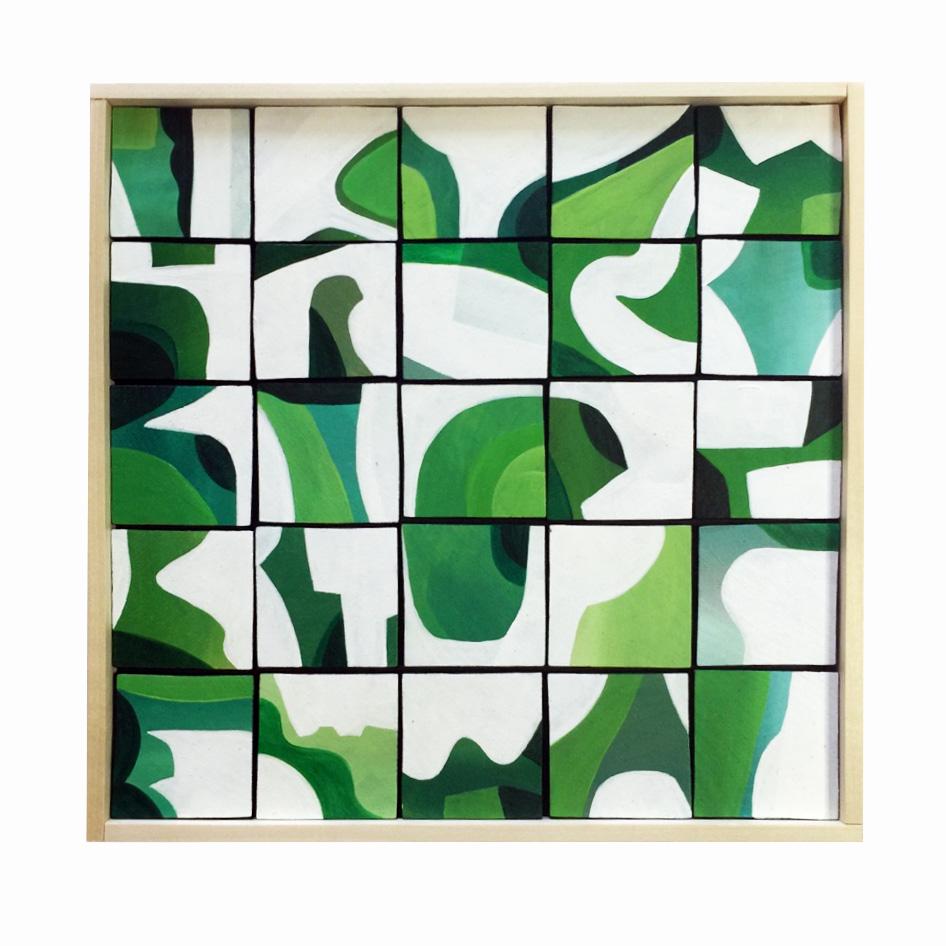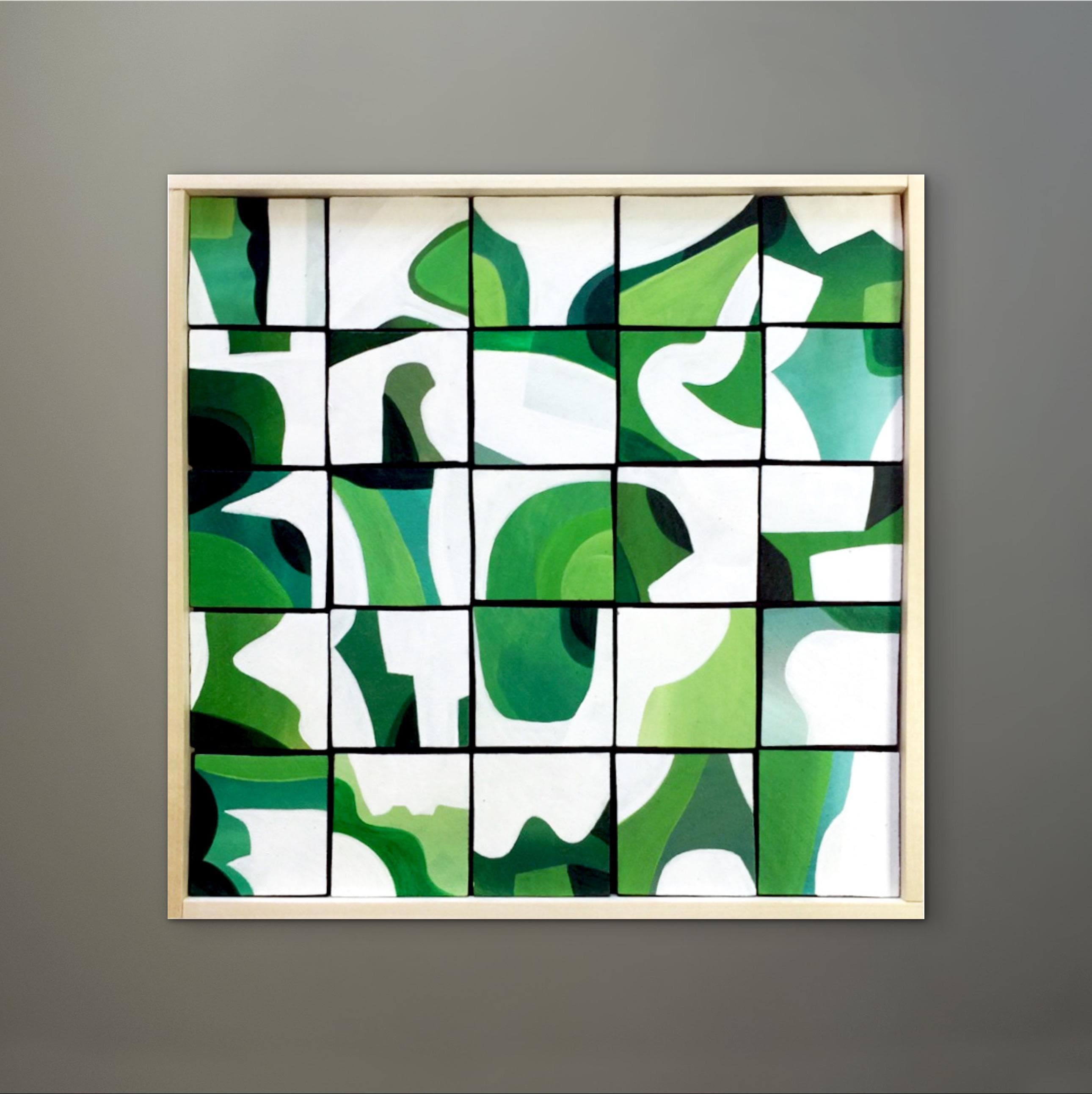 Original Acrylic painting on wood squares mounted on 10" x 10" on wood panel
