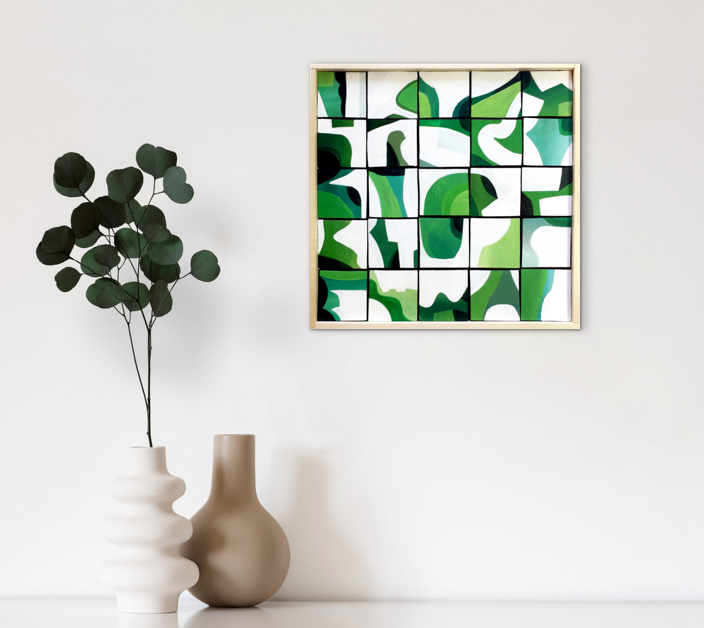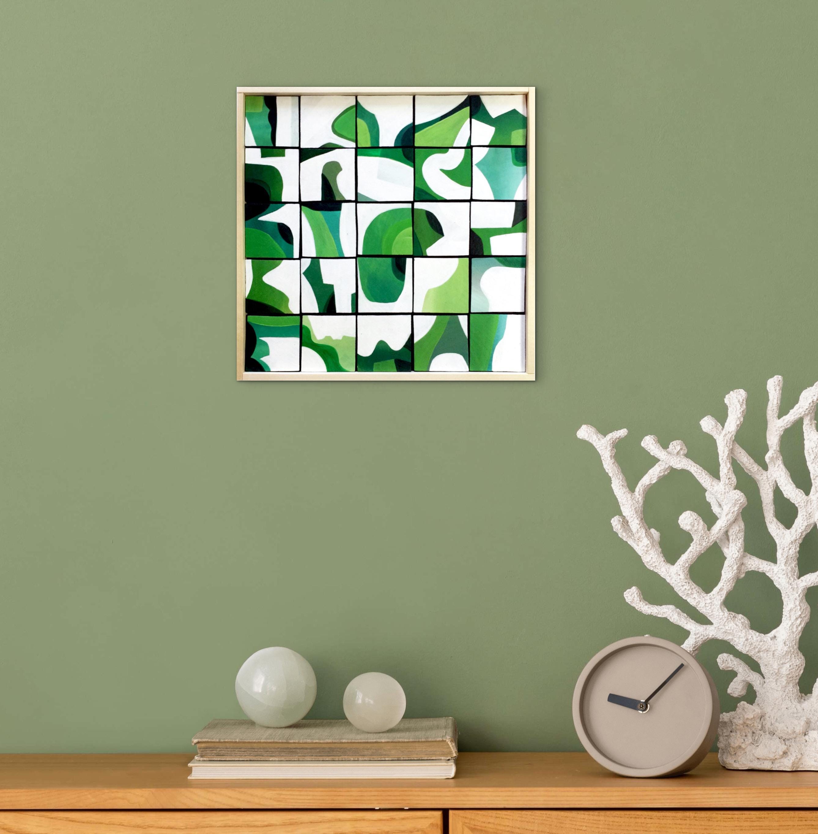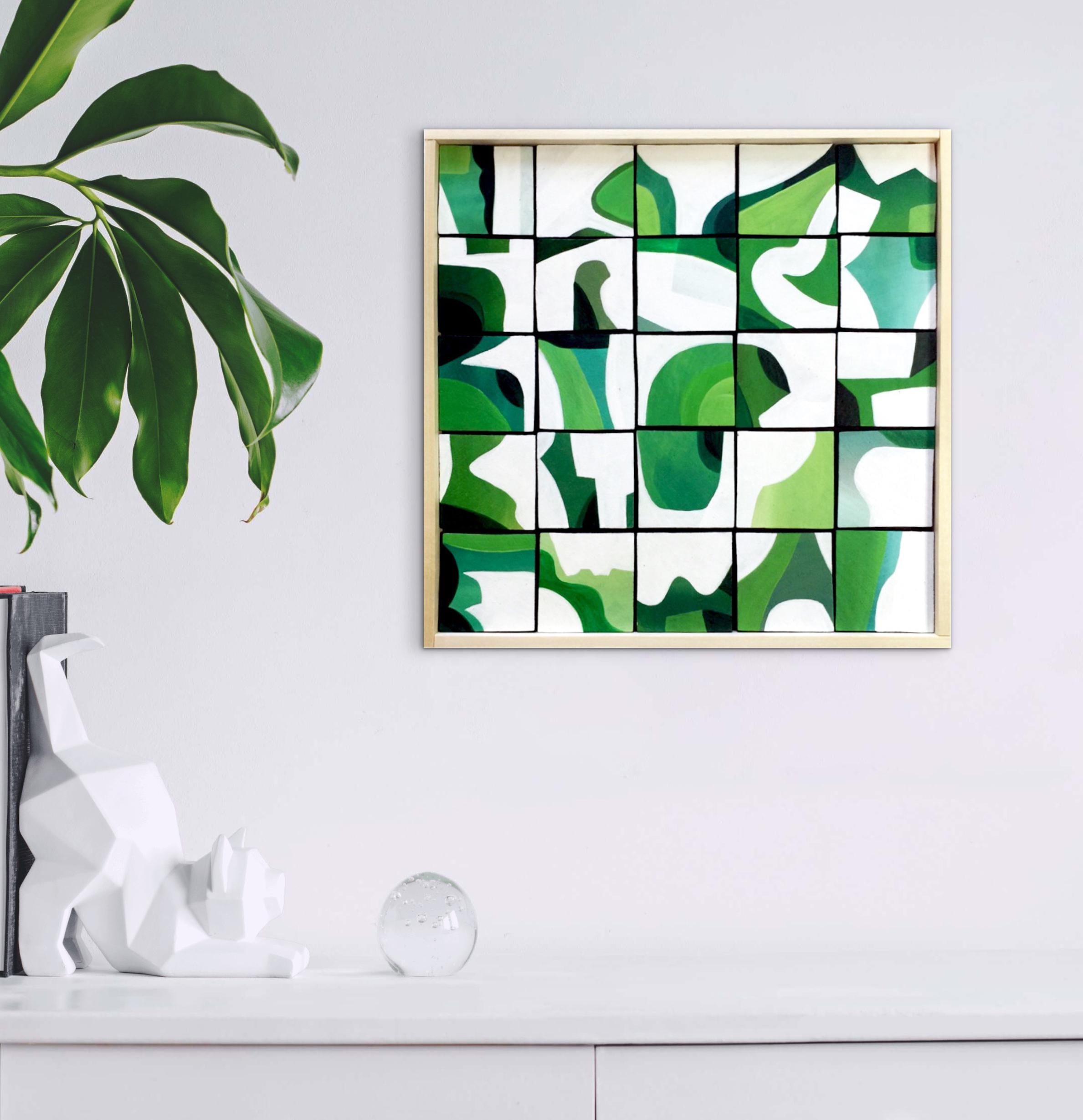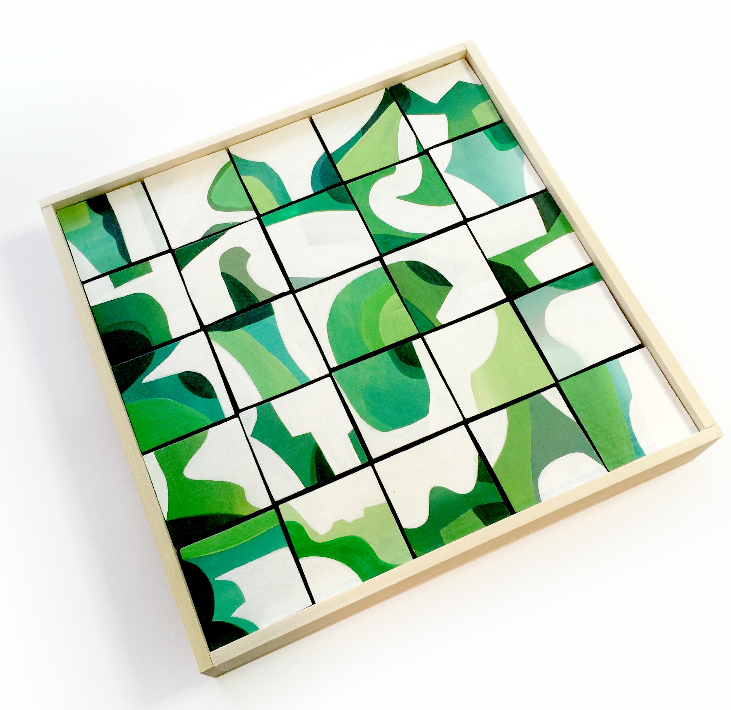 Original Acrylic painting on wood squares mounted on 10" x 10" on wood panel
