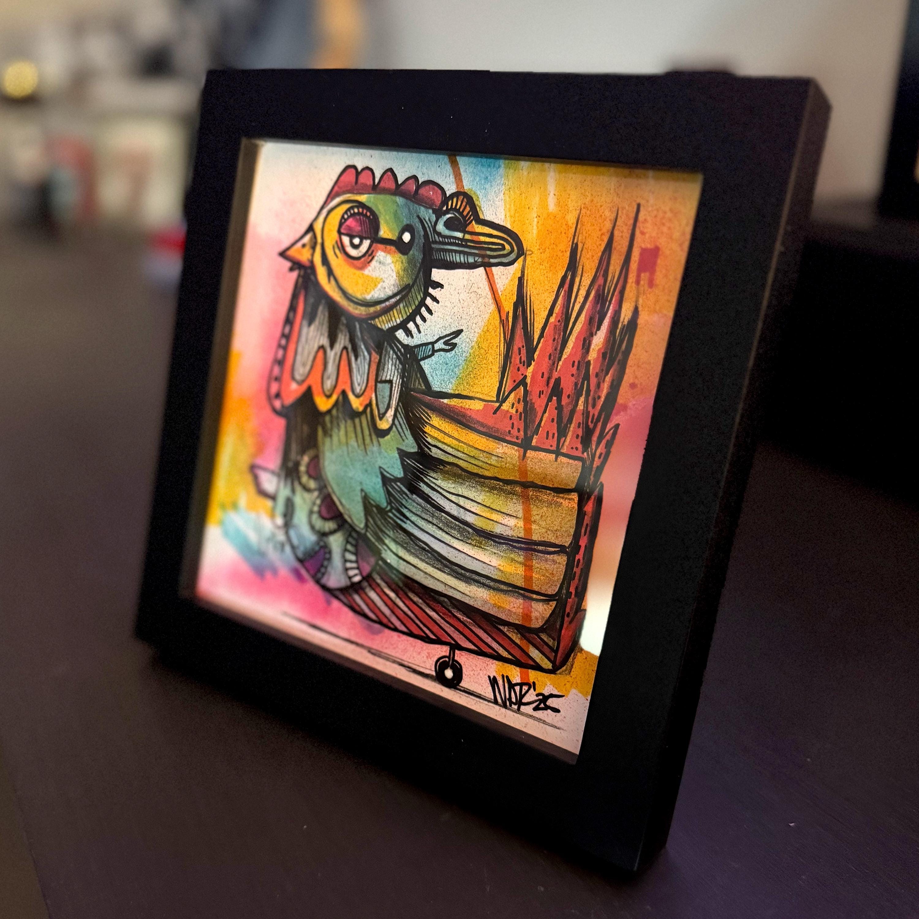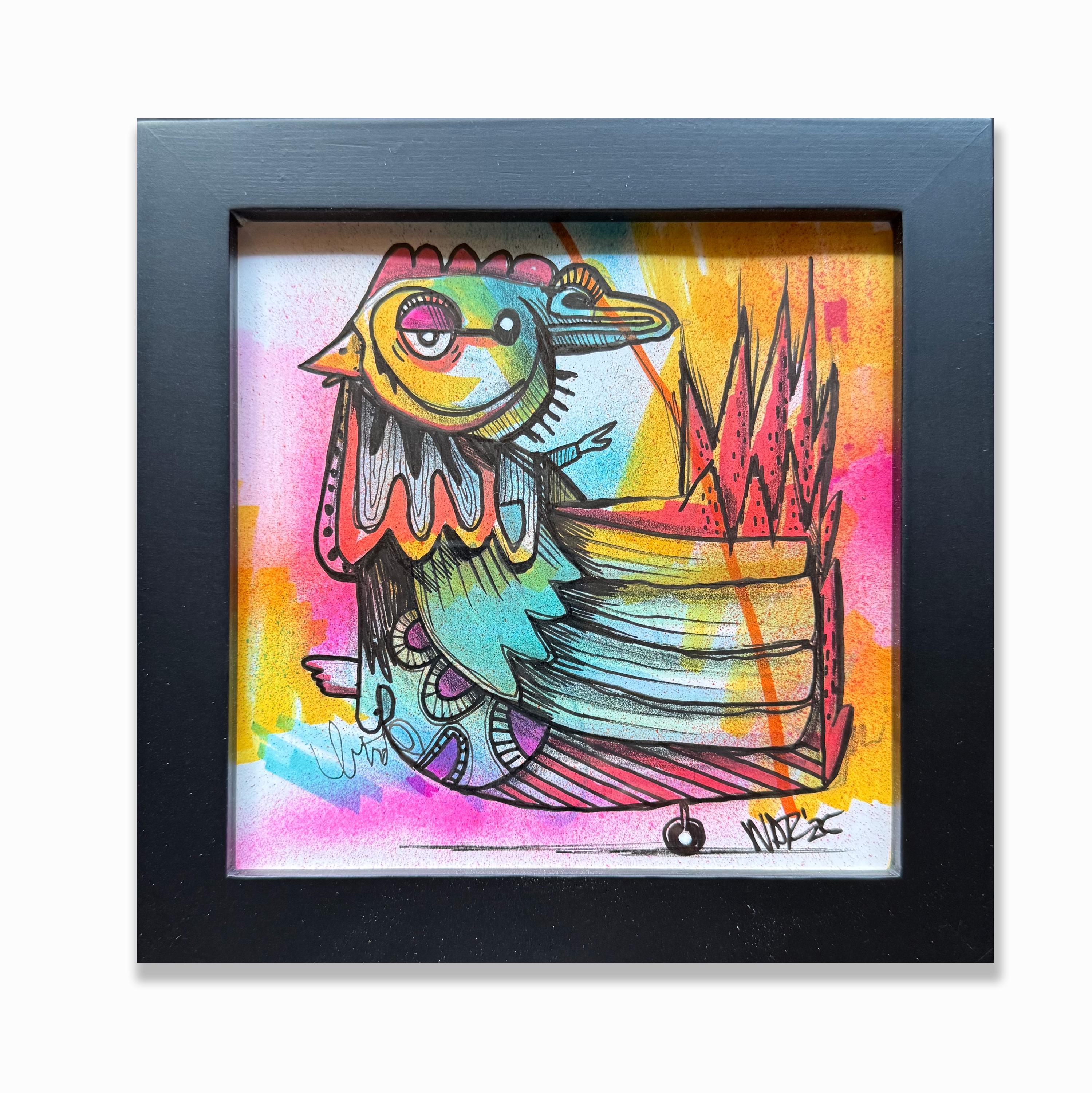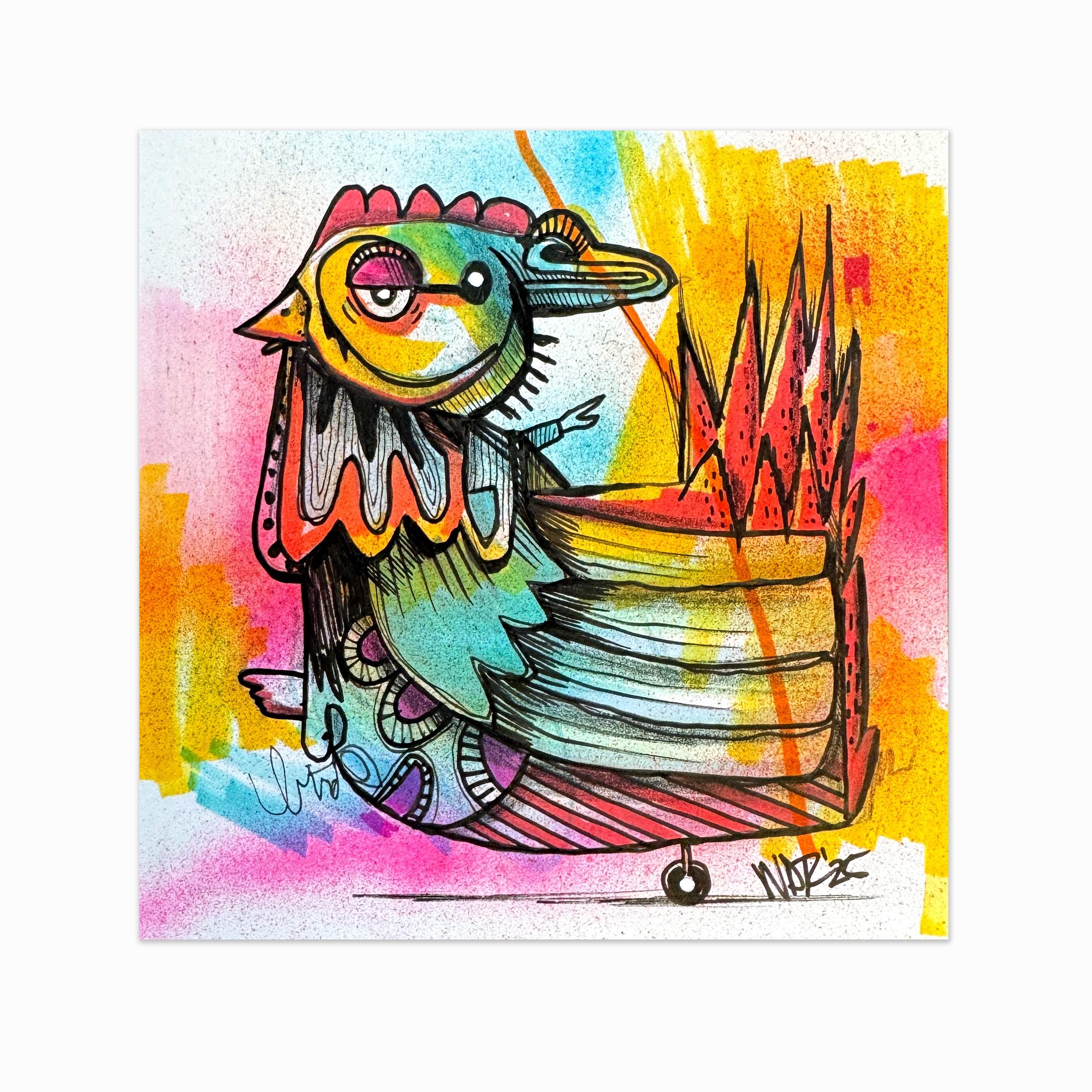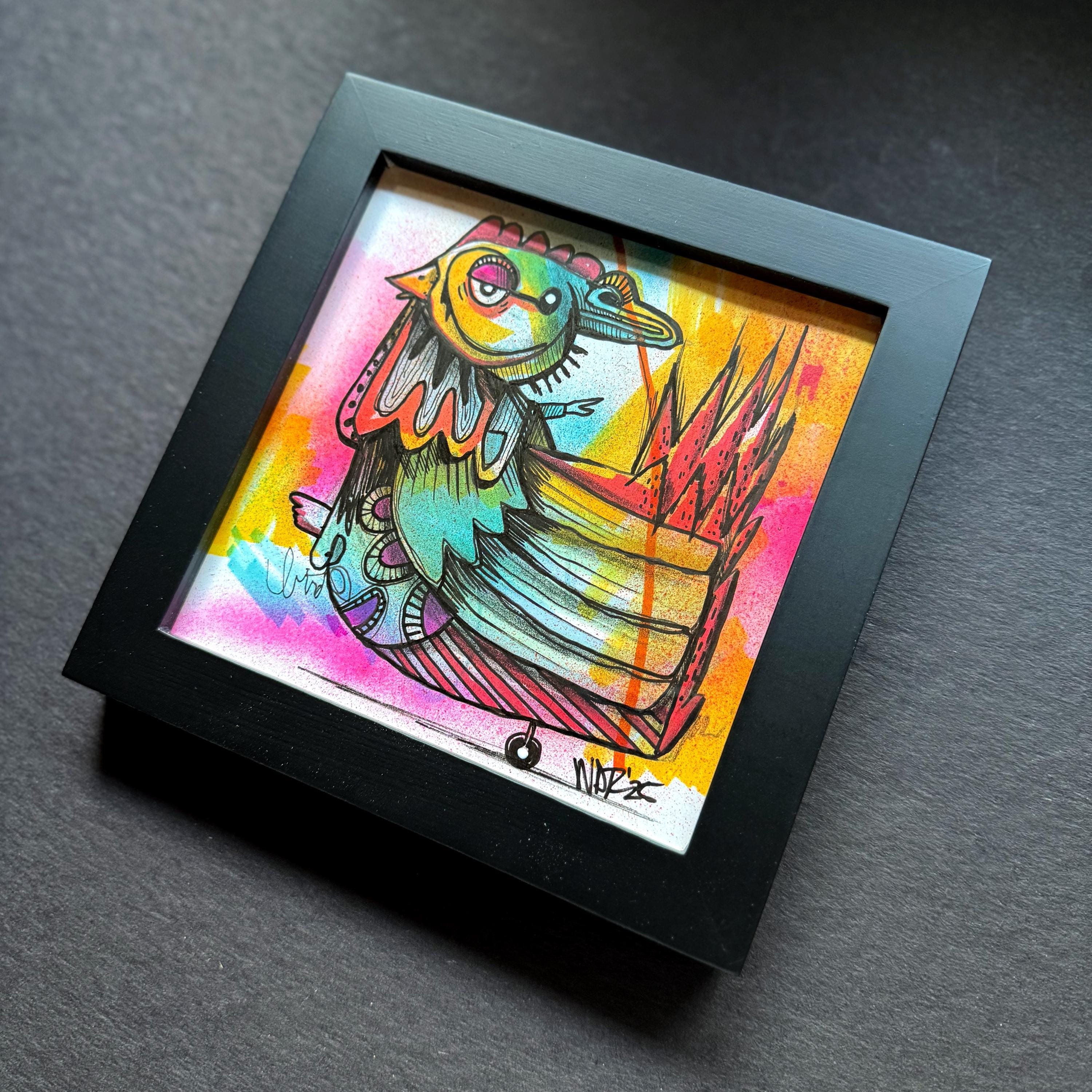 One-Wheeled Cuckoo - Original mixed media Illustration on Bristol - 6" x 6" - Original Artwork