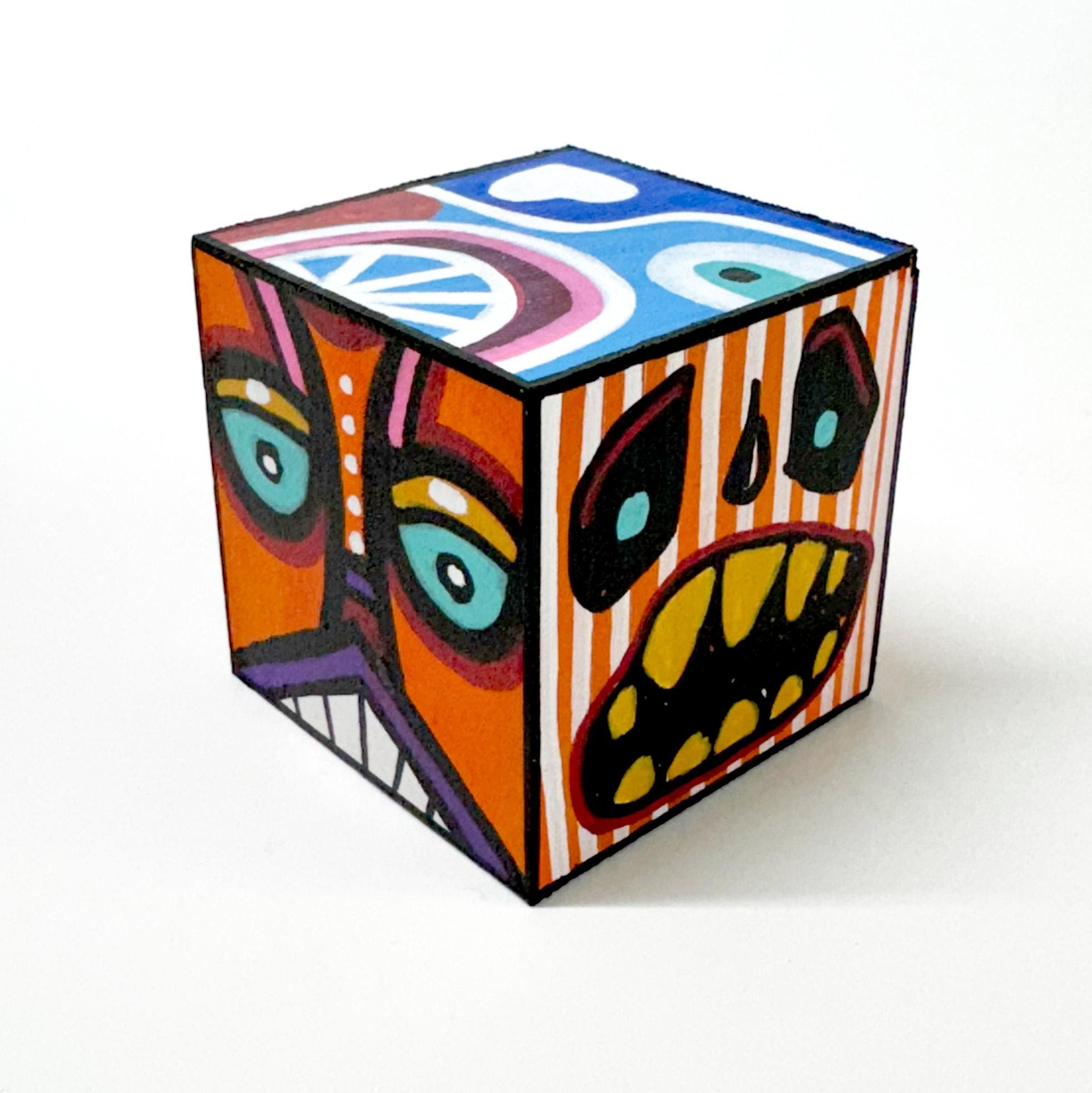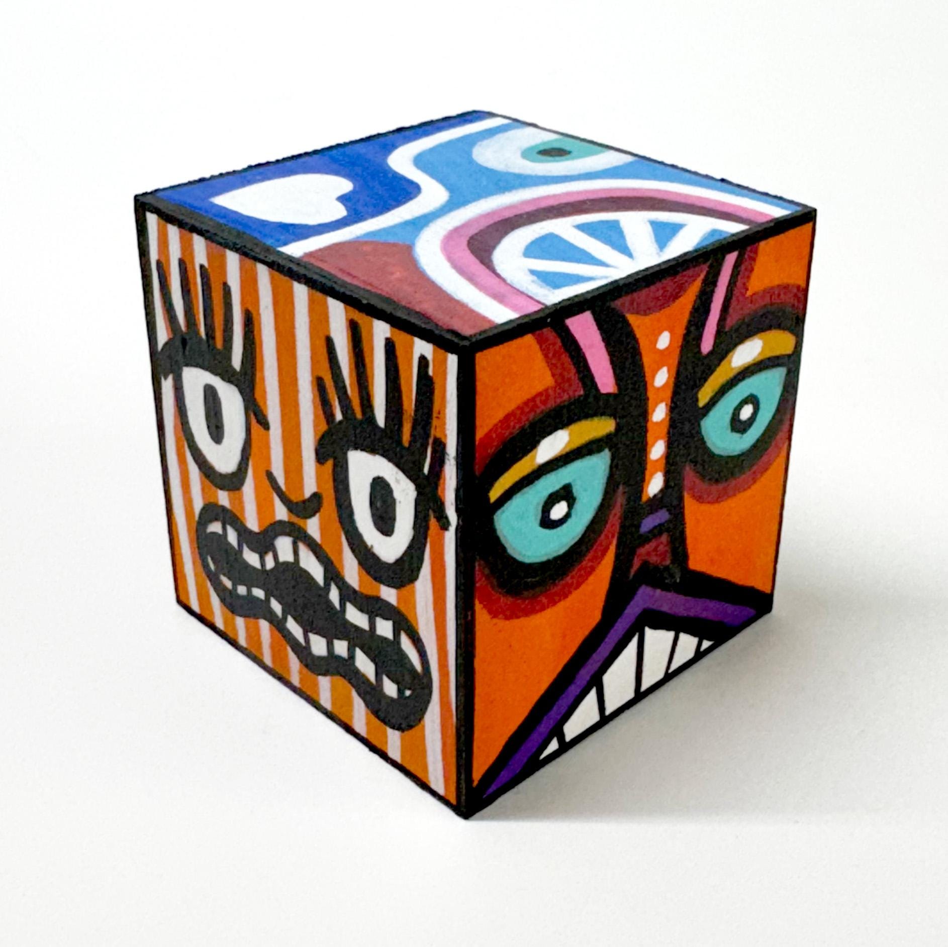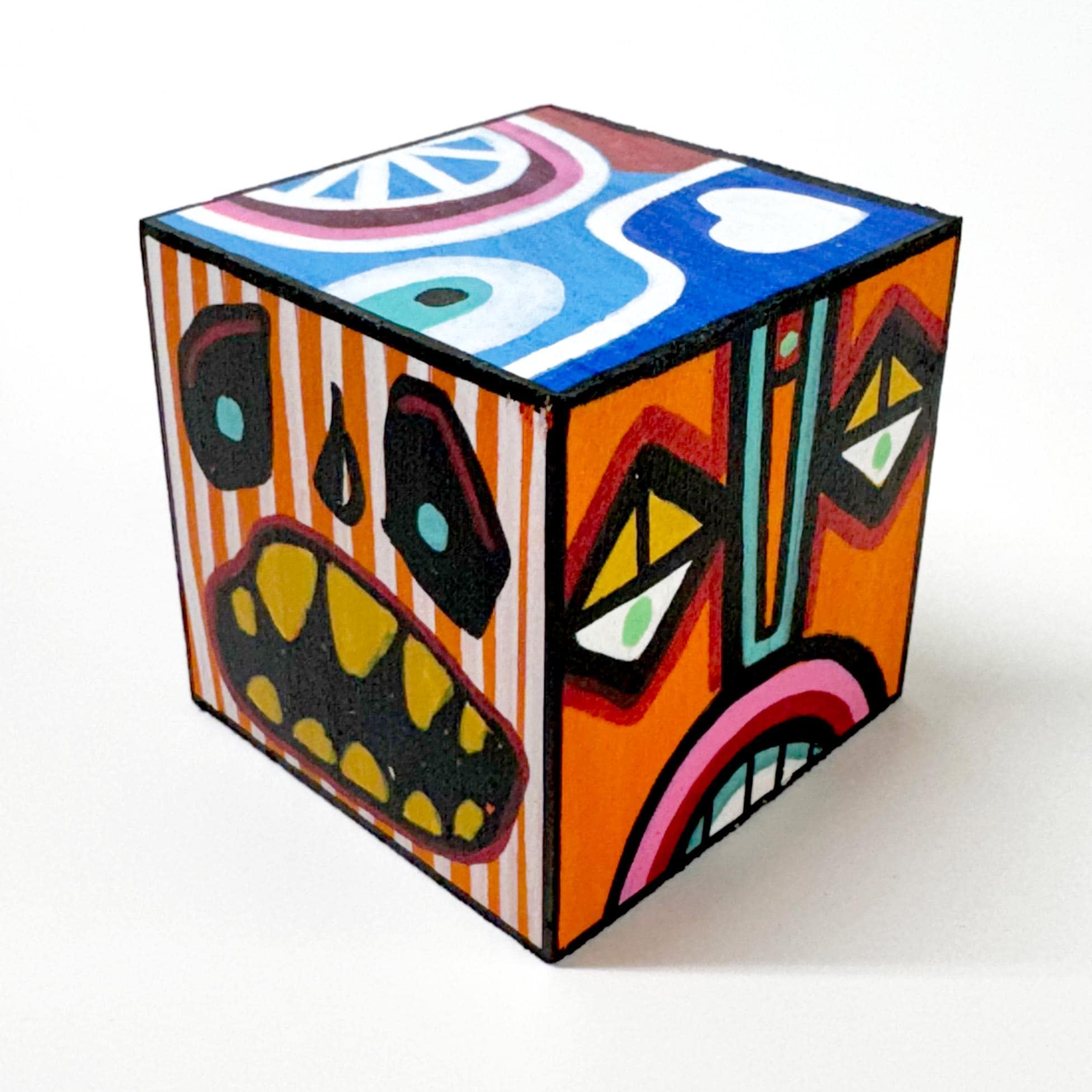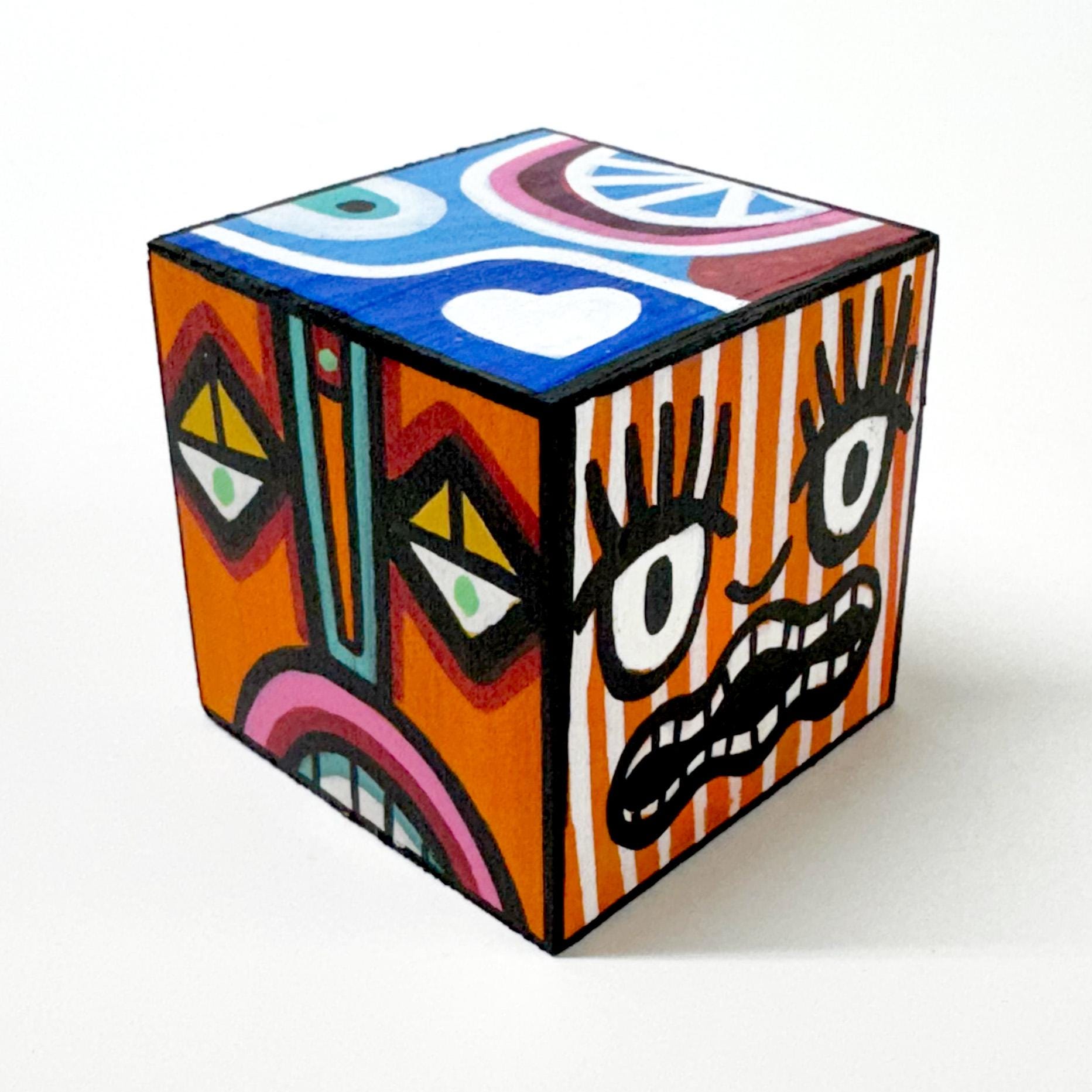 Funk Totem Parts are mixed media works of art on various sized wood blocks.