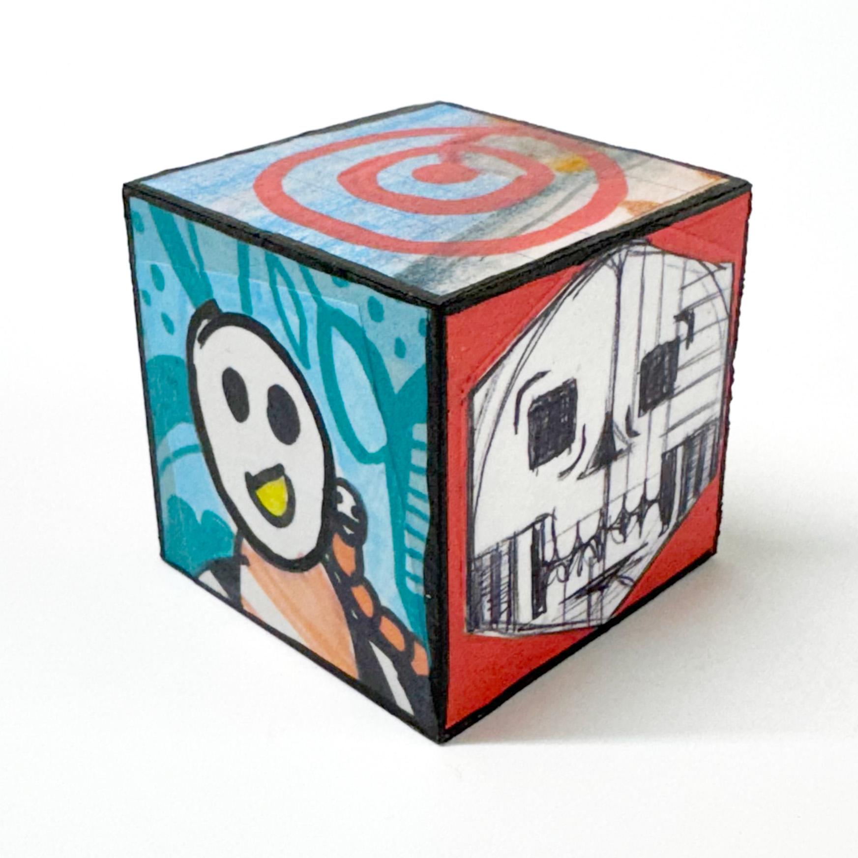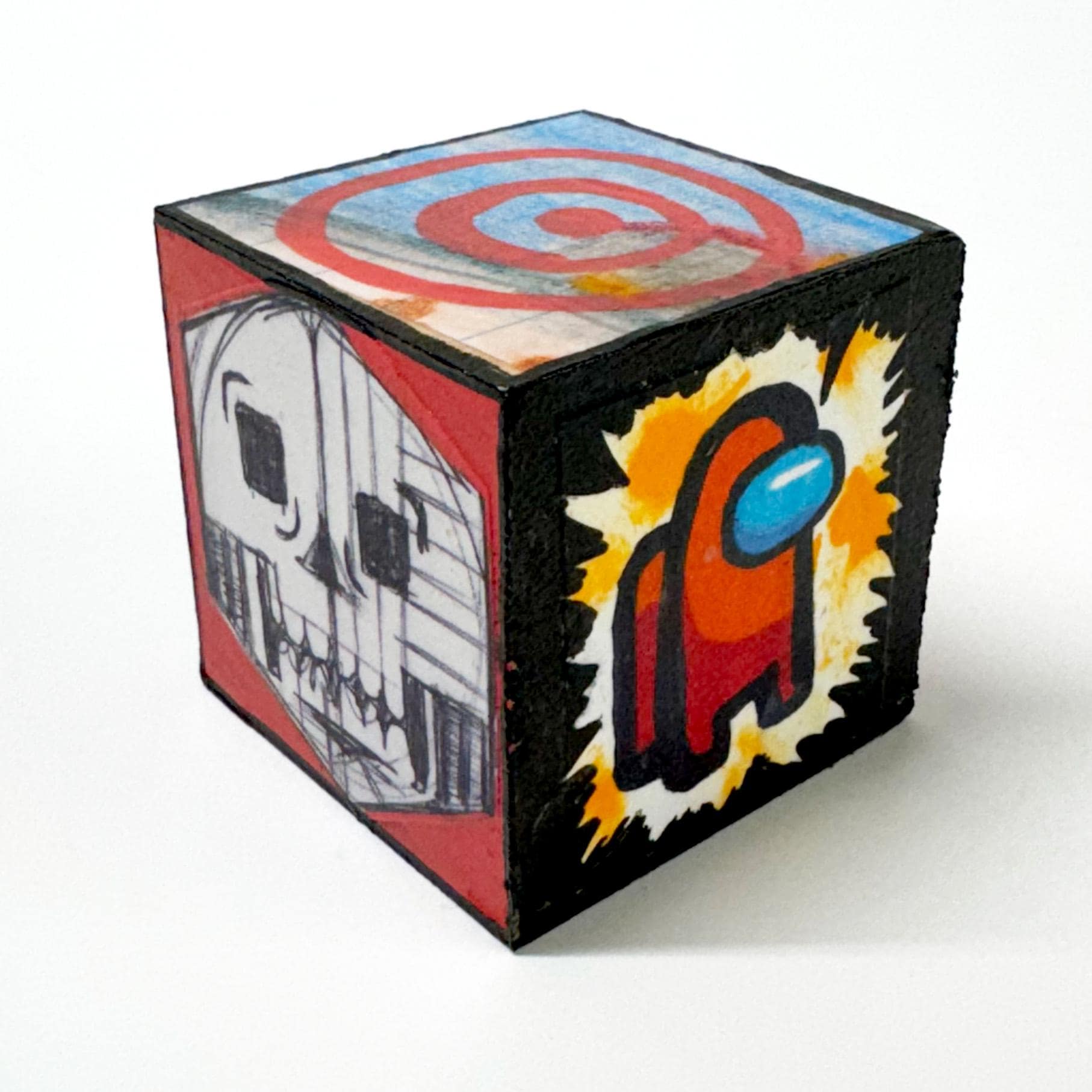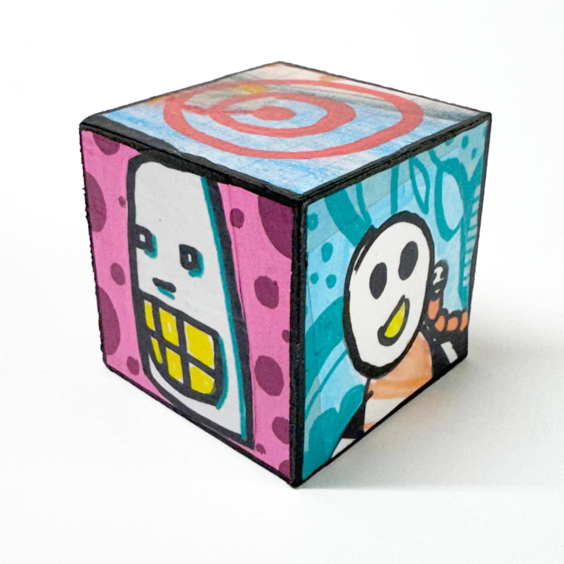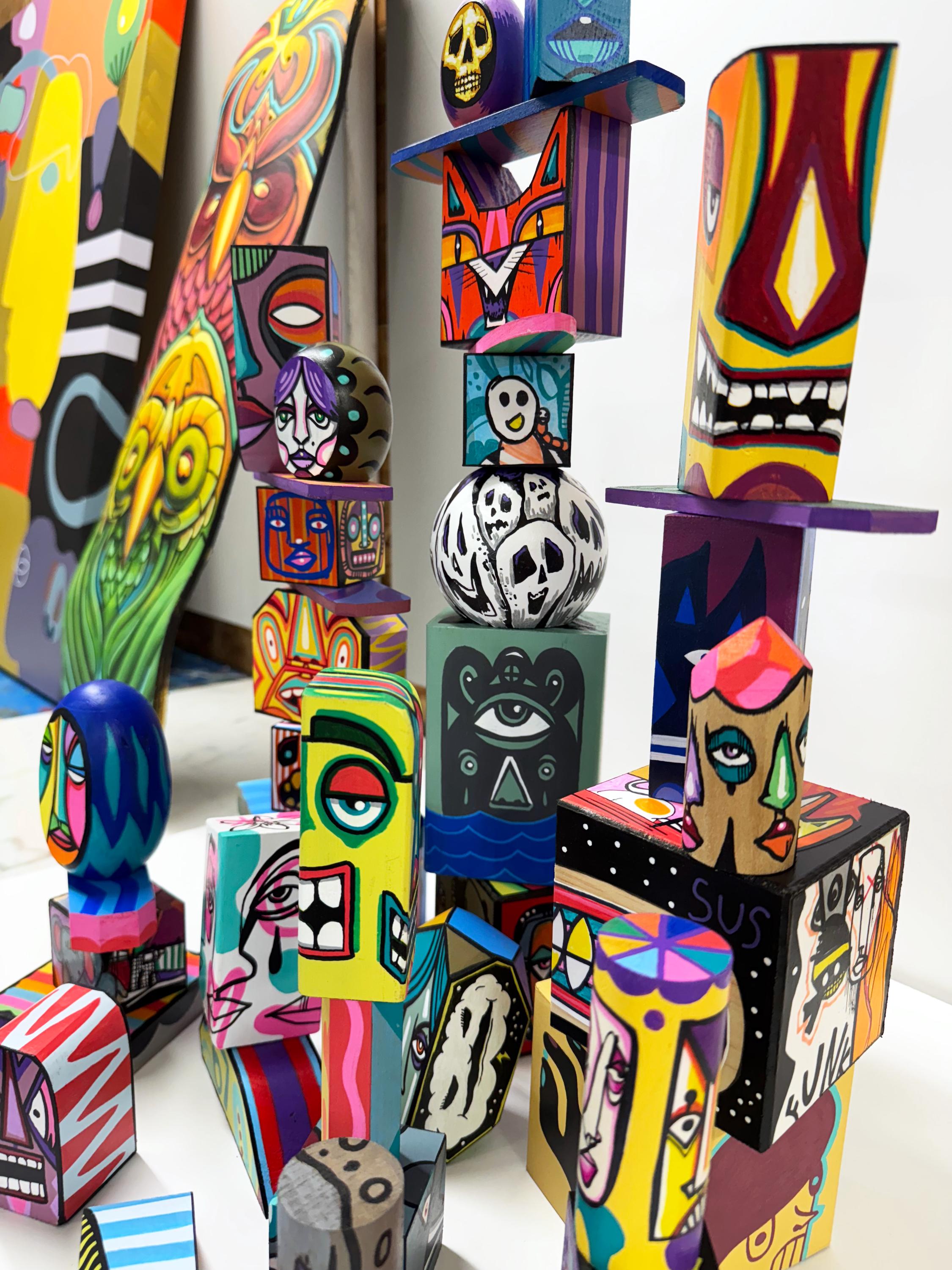 Funk Totem Parts are mixed media works of art on various sized wood blocks.