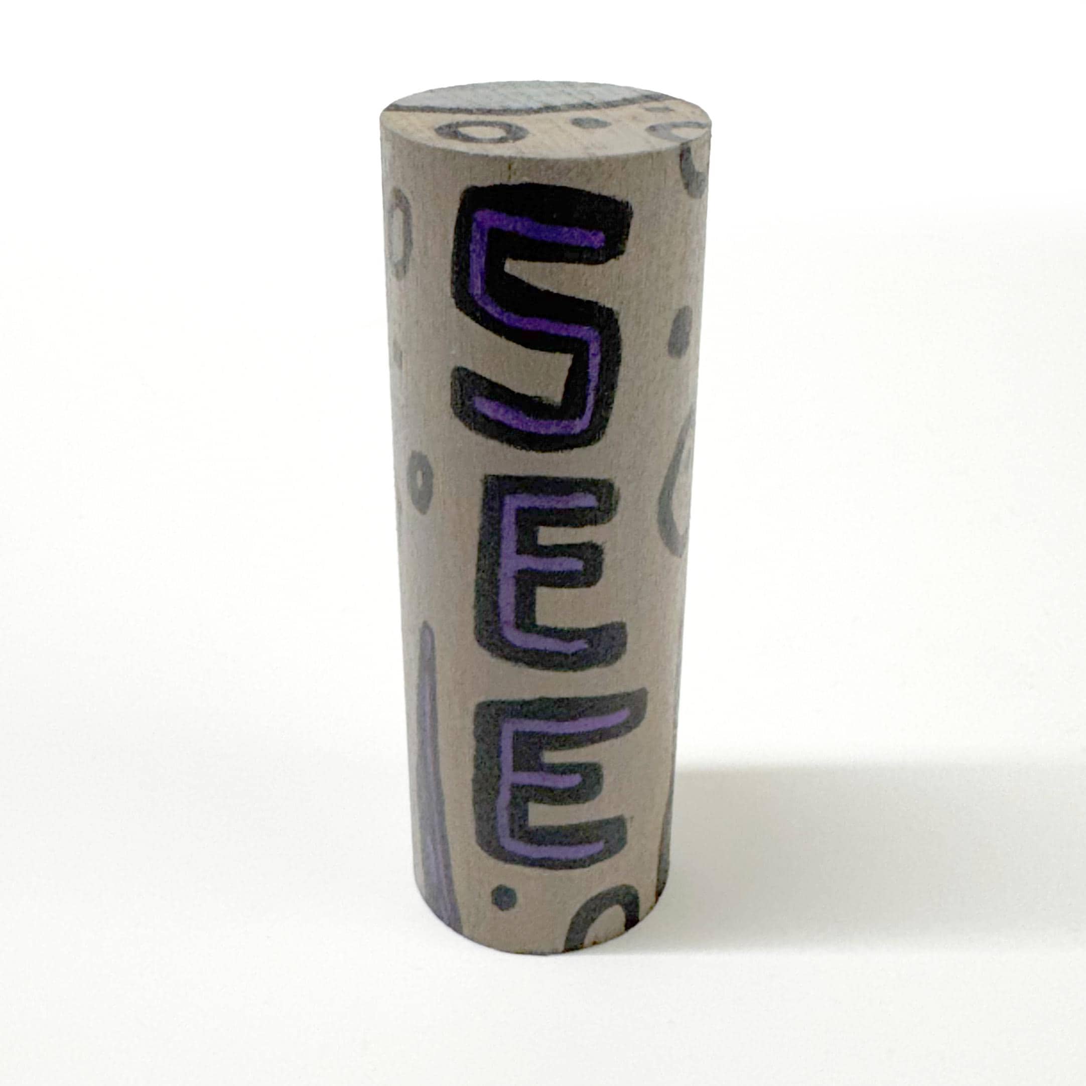 Funk Totem Parts are mixed media works of art on various sized wood blocks.