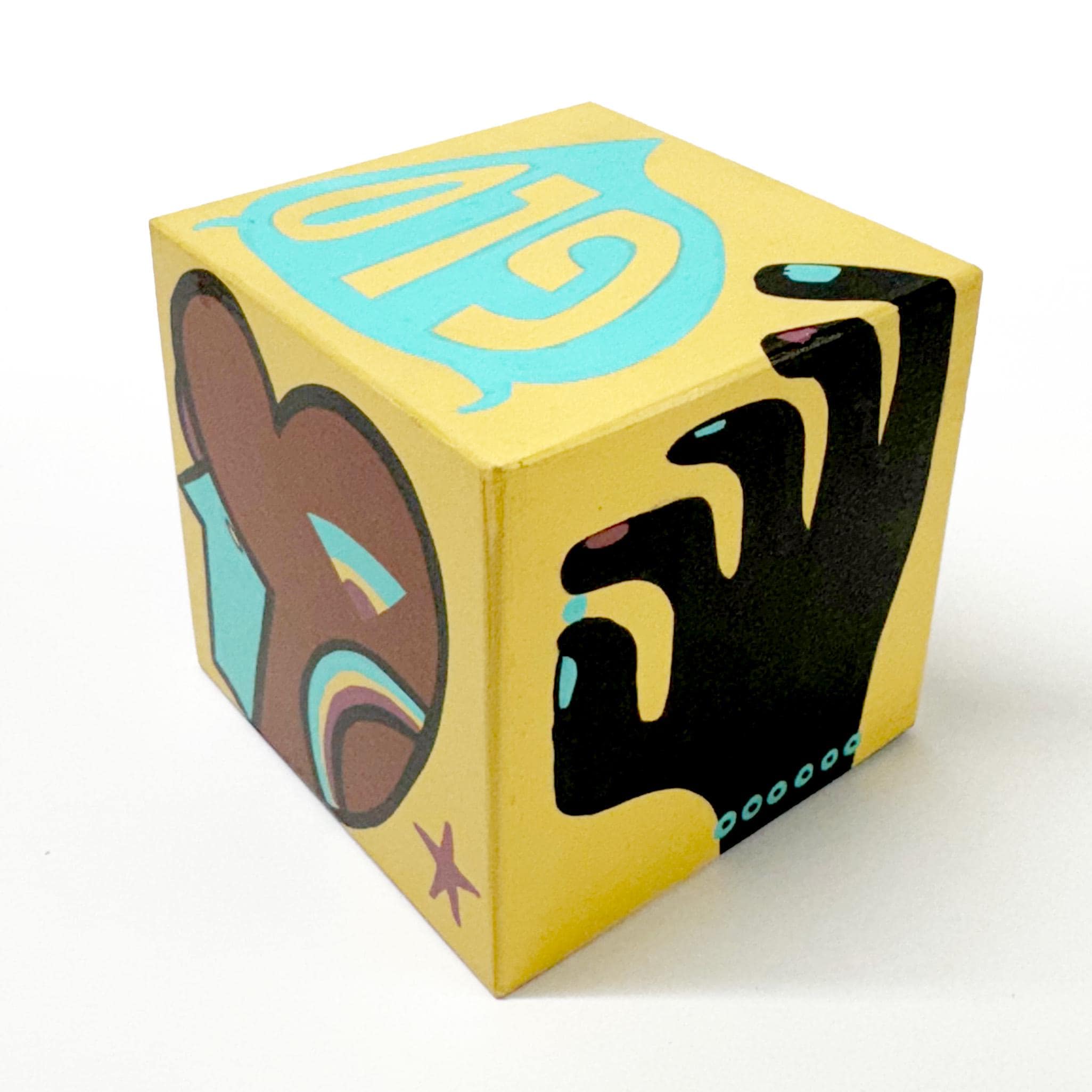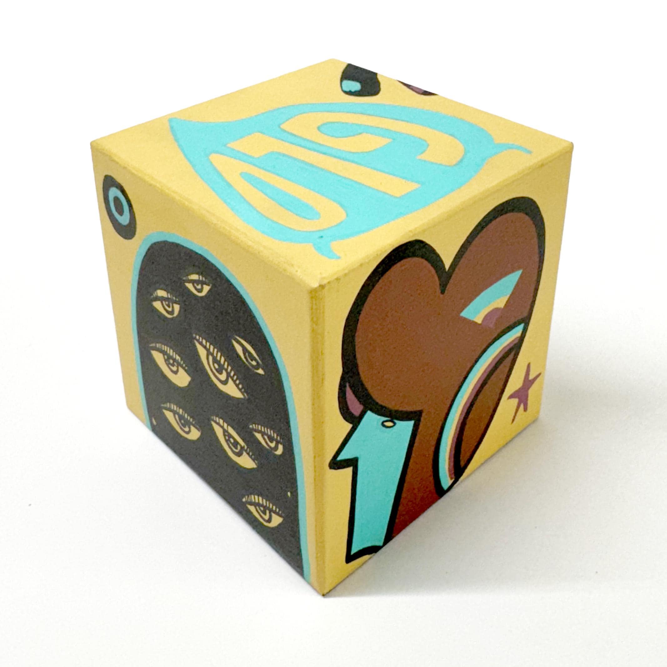 Funk Totem Parts are mixed media works of art on various sized wood blocks.