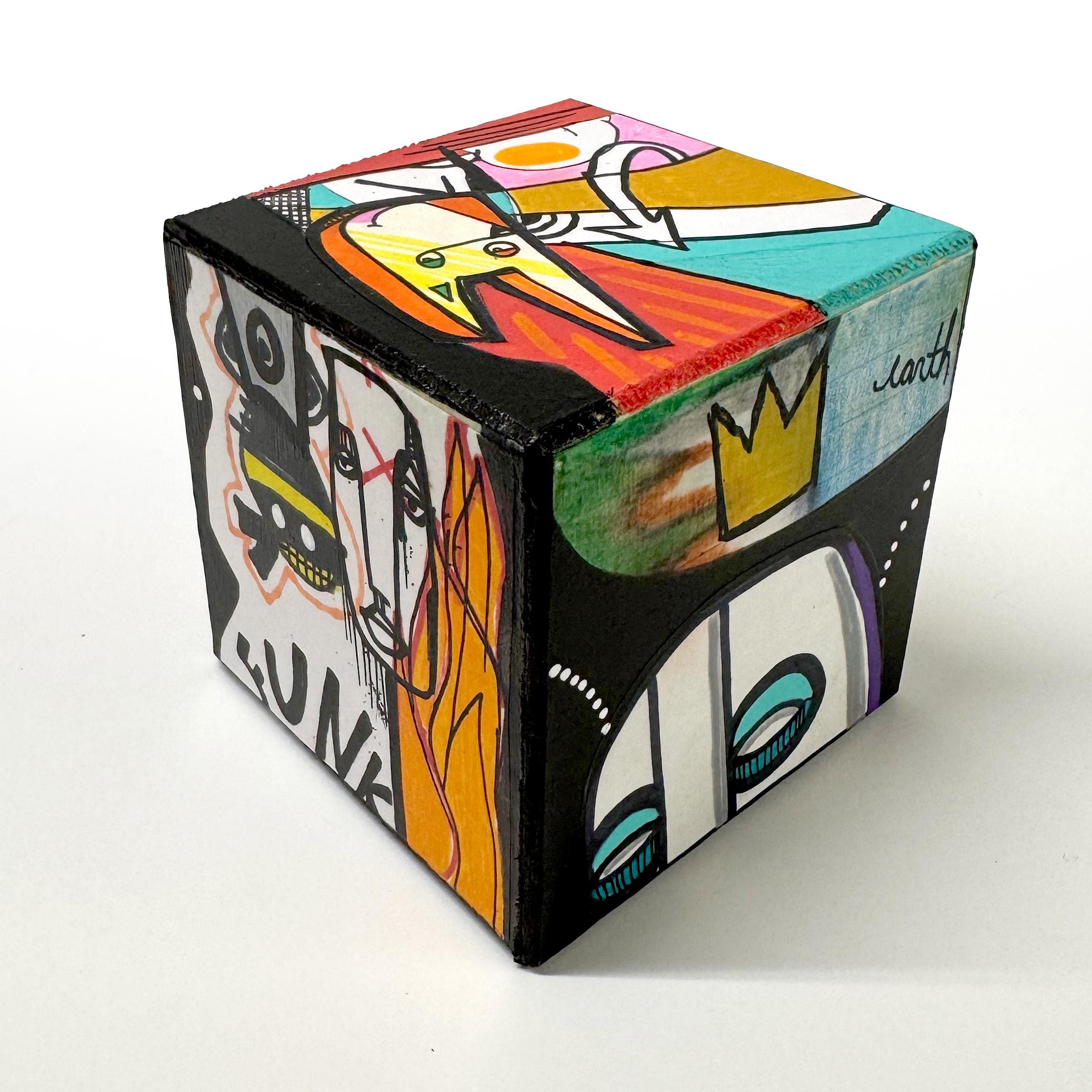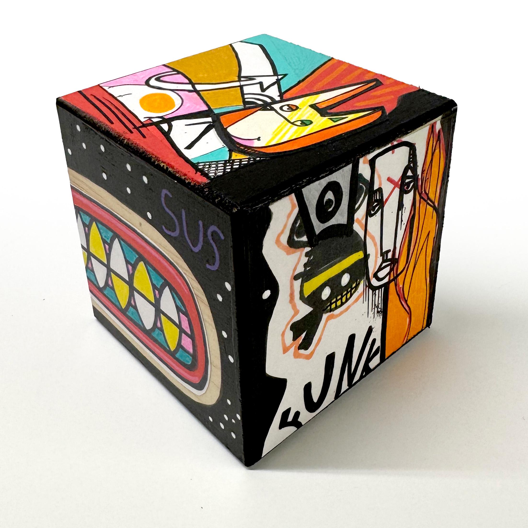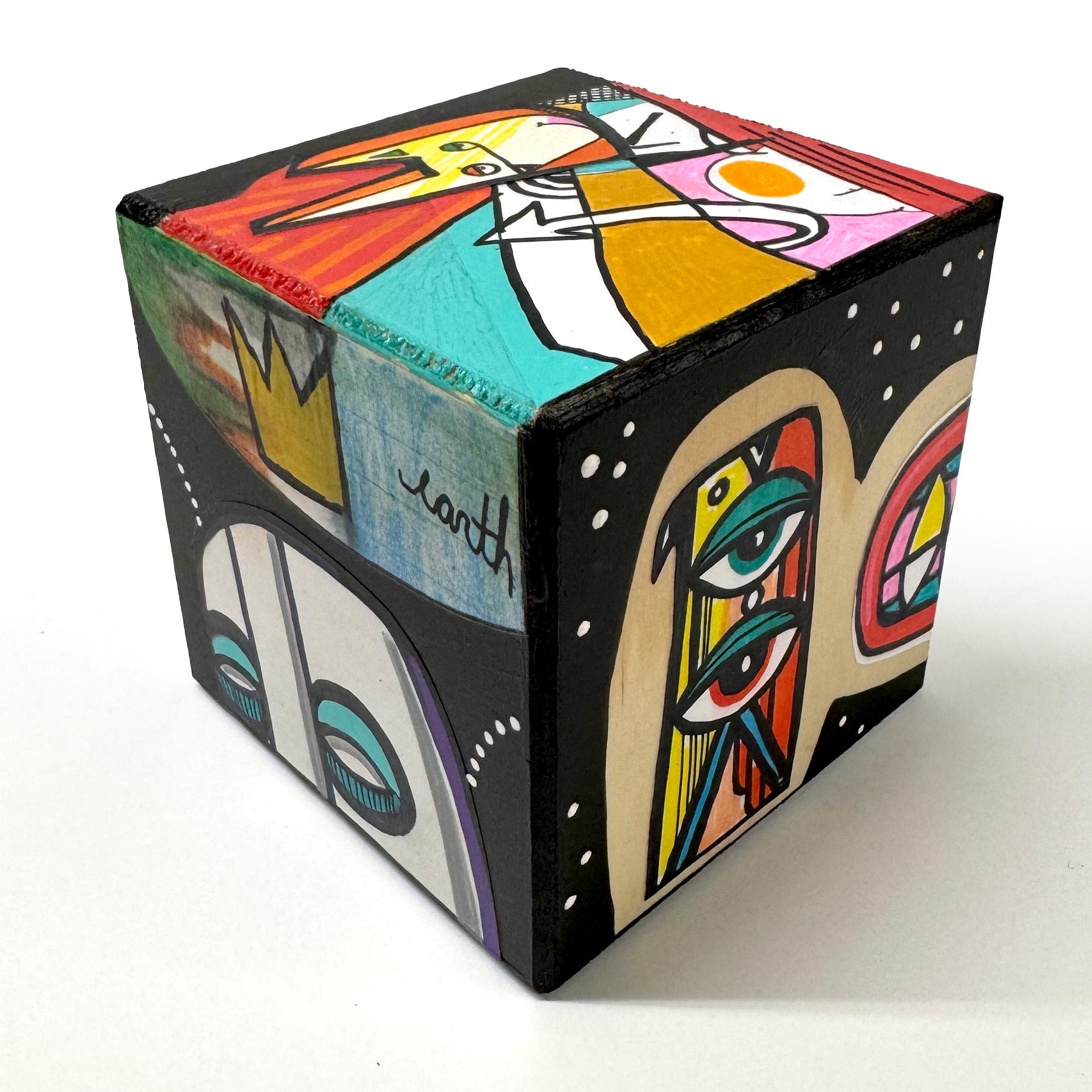 Funk Totem Parts are mixed media works of art on various sized wood blocks.