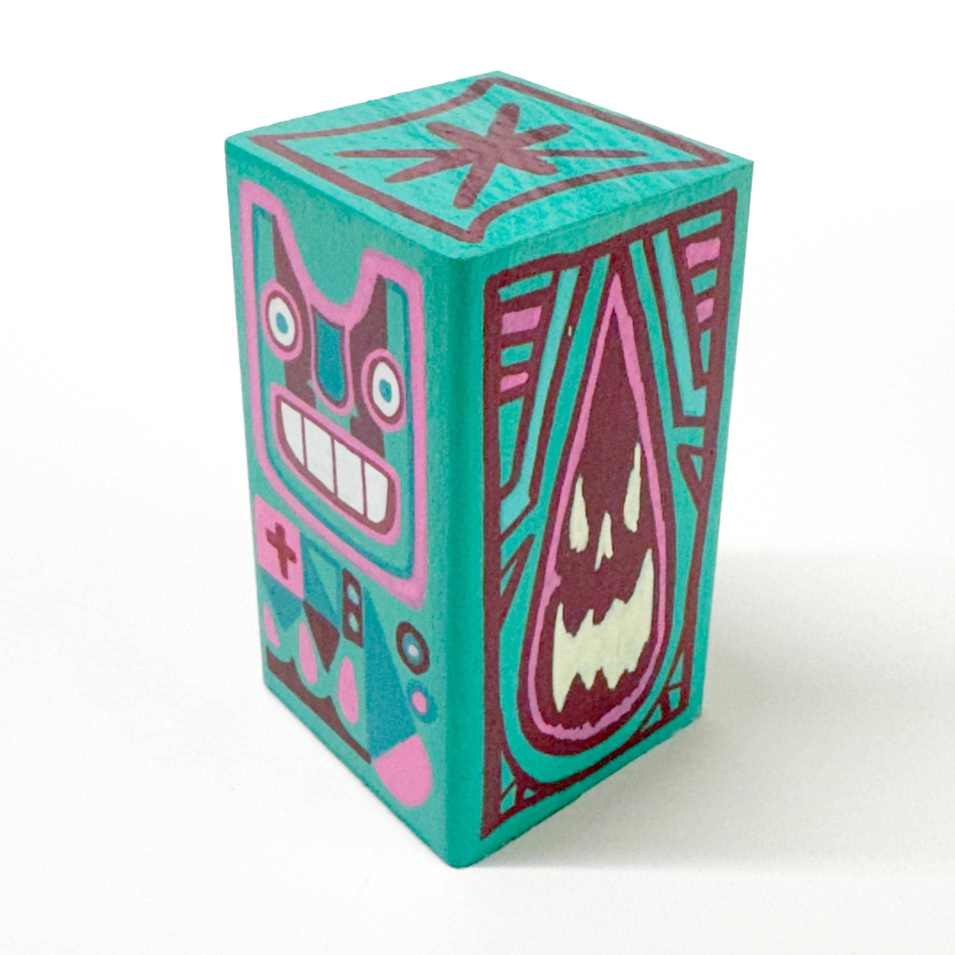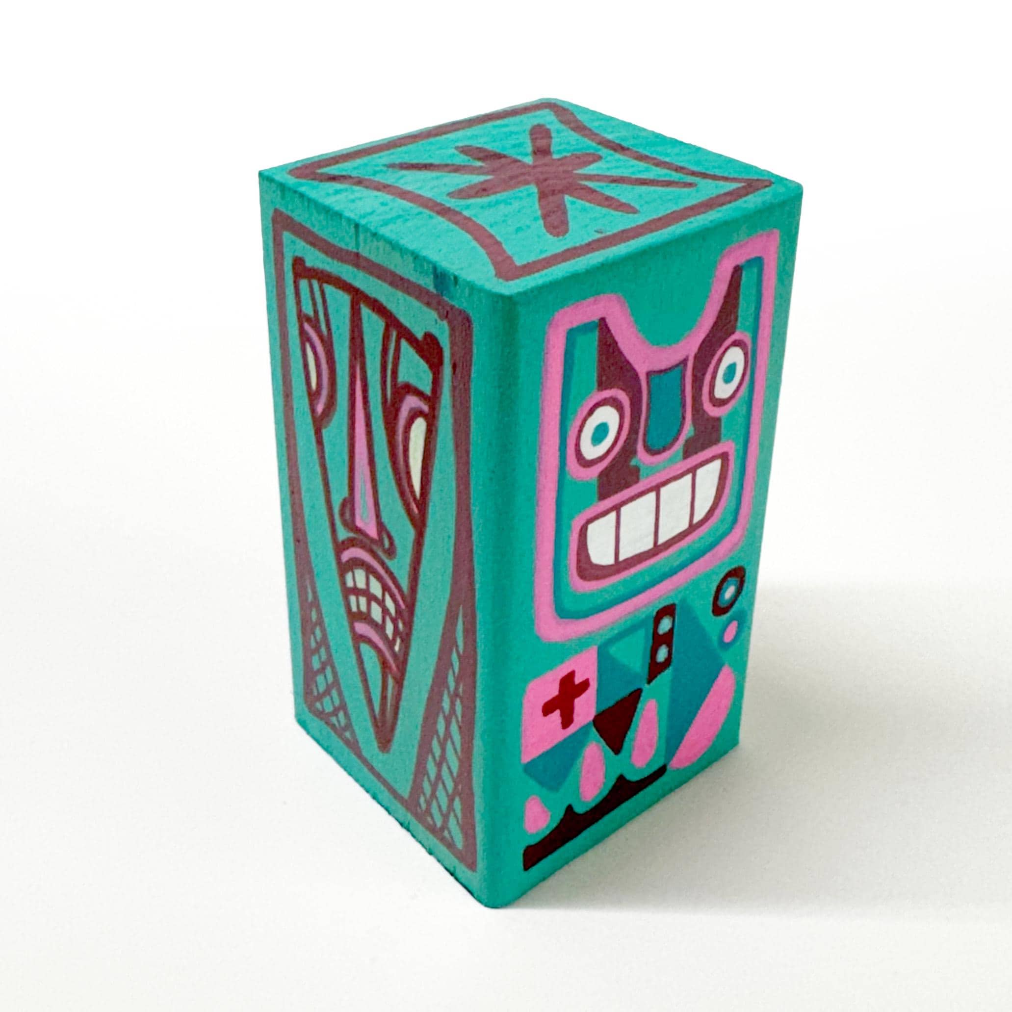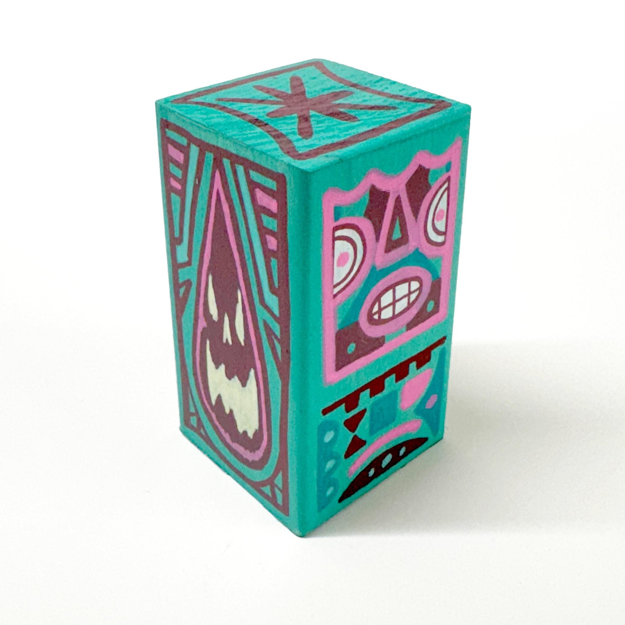 Funk Totem Parts are mixed media works of art on various sized wood blocks.