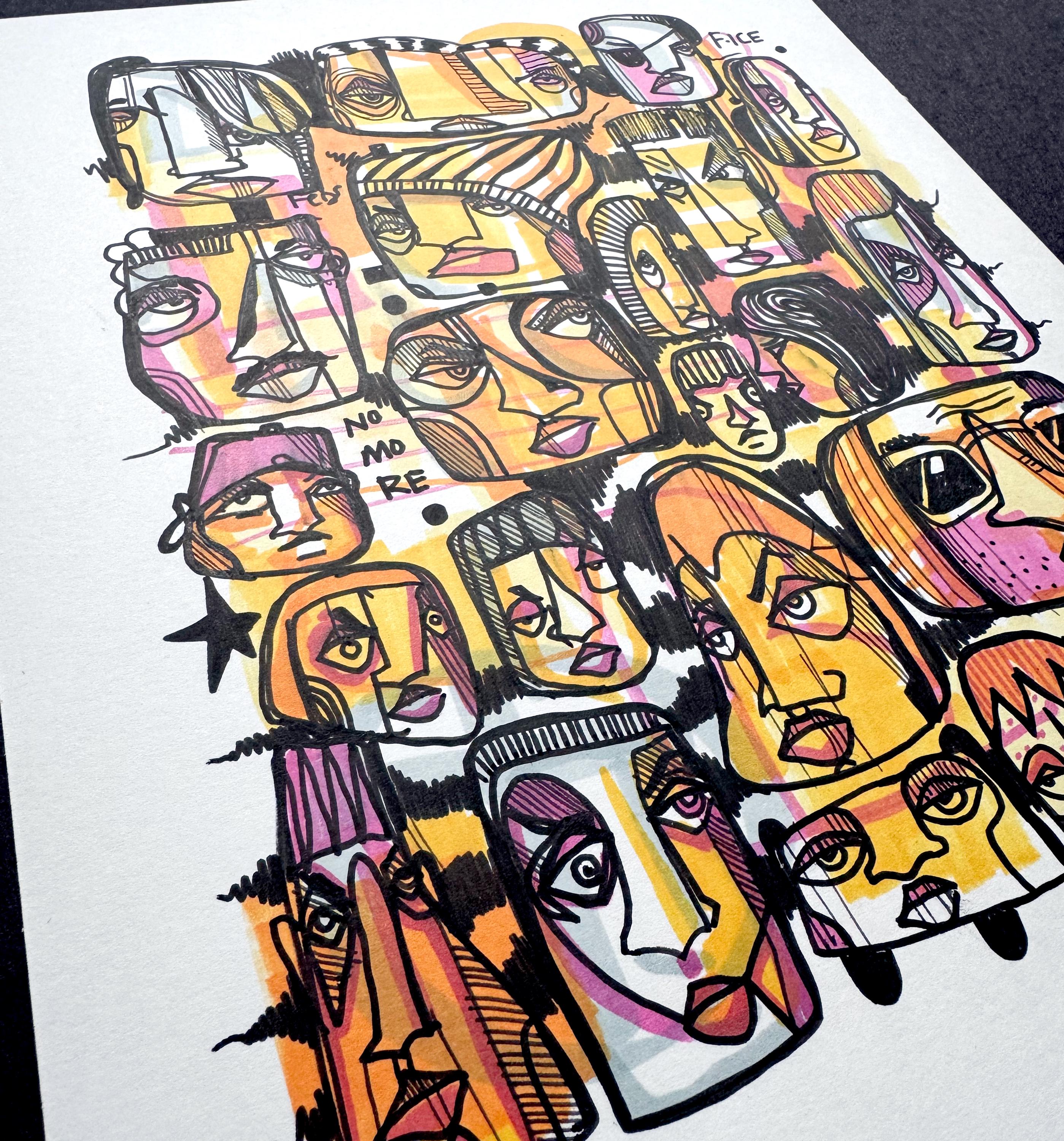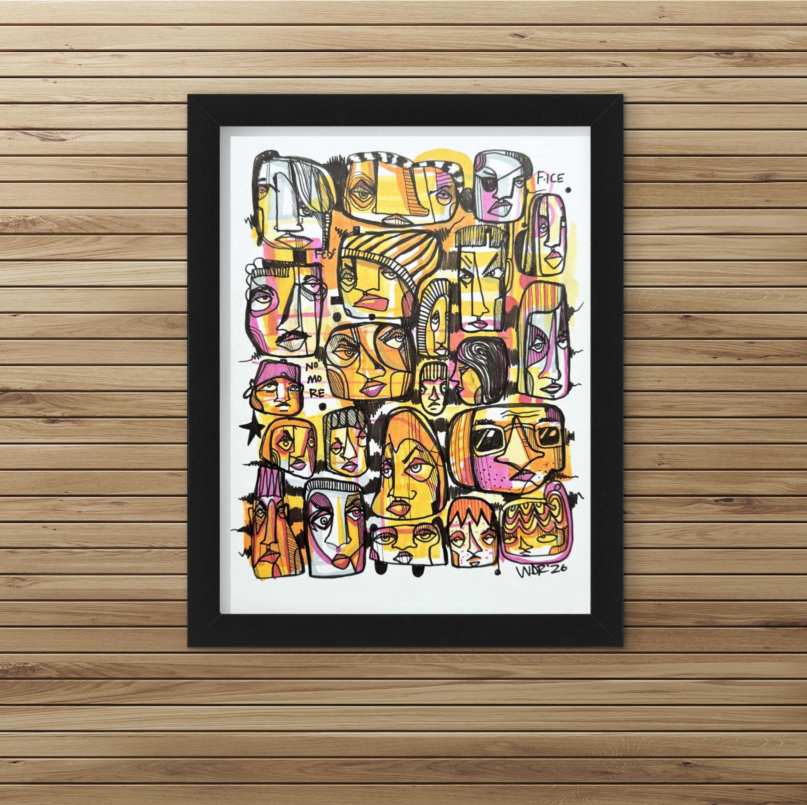 Power to the People 3 - Original mixed media Illustration on Bristol - 8" x 10" - Original Artwork