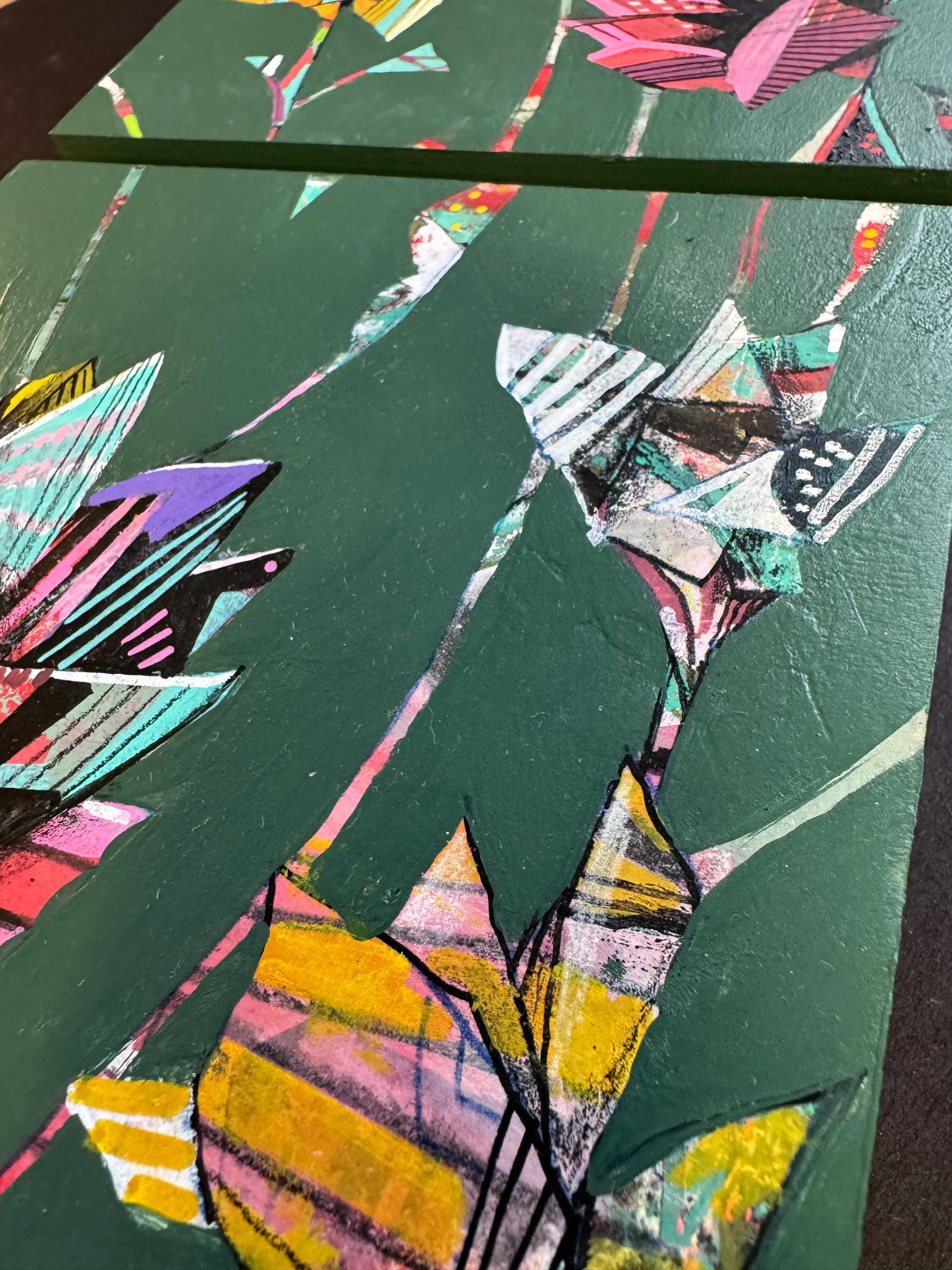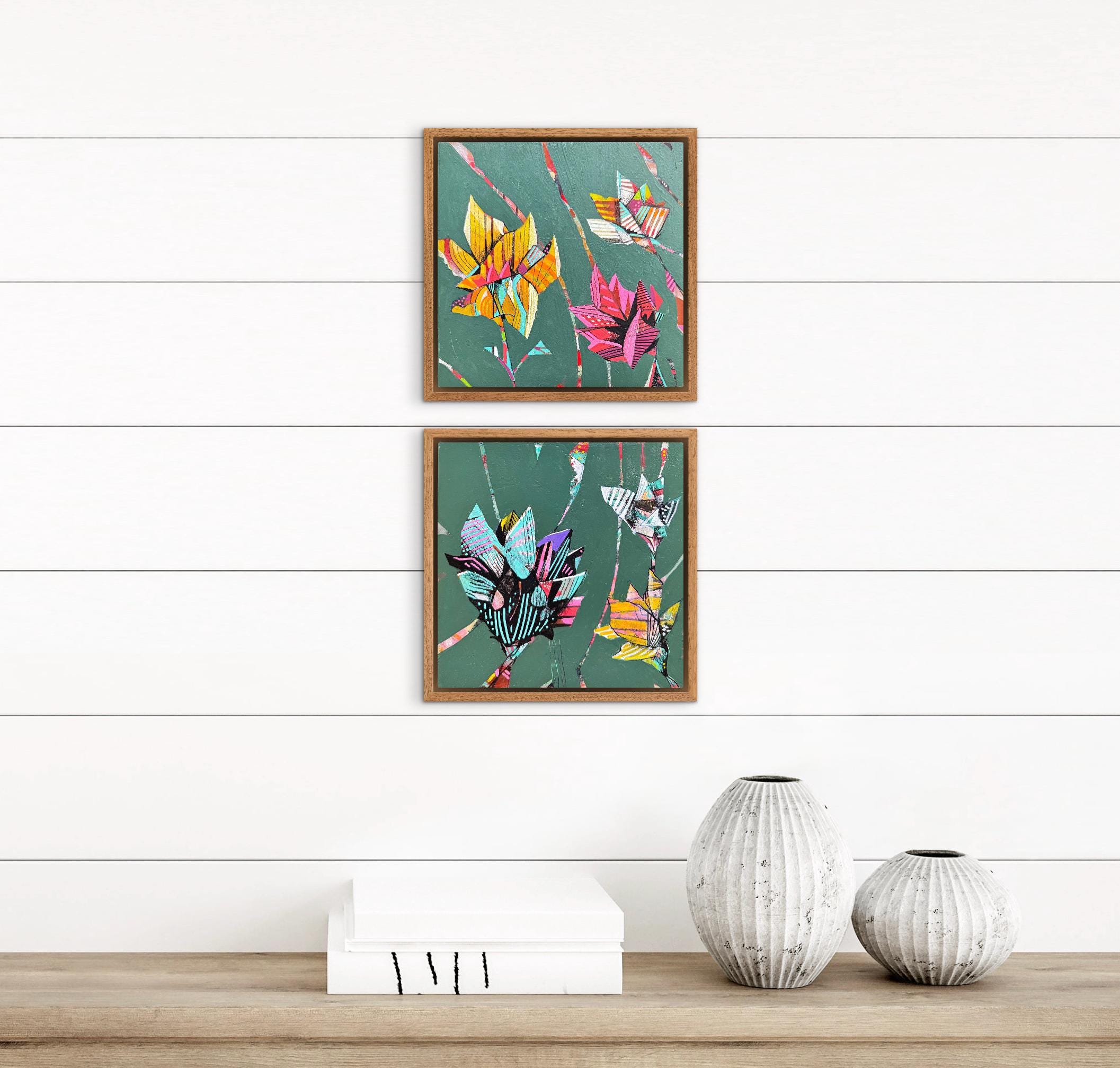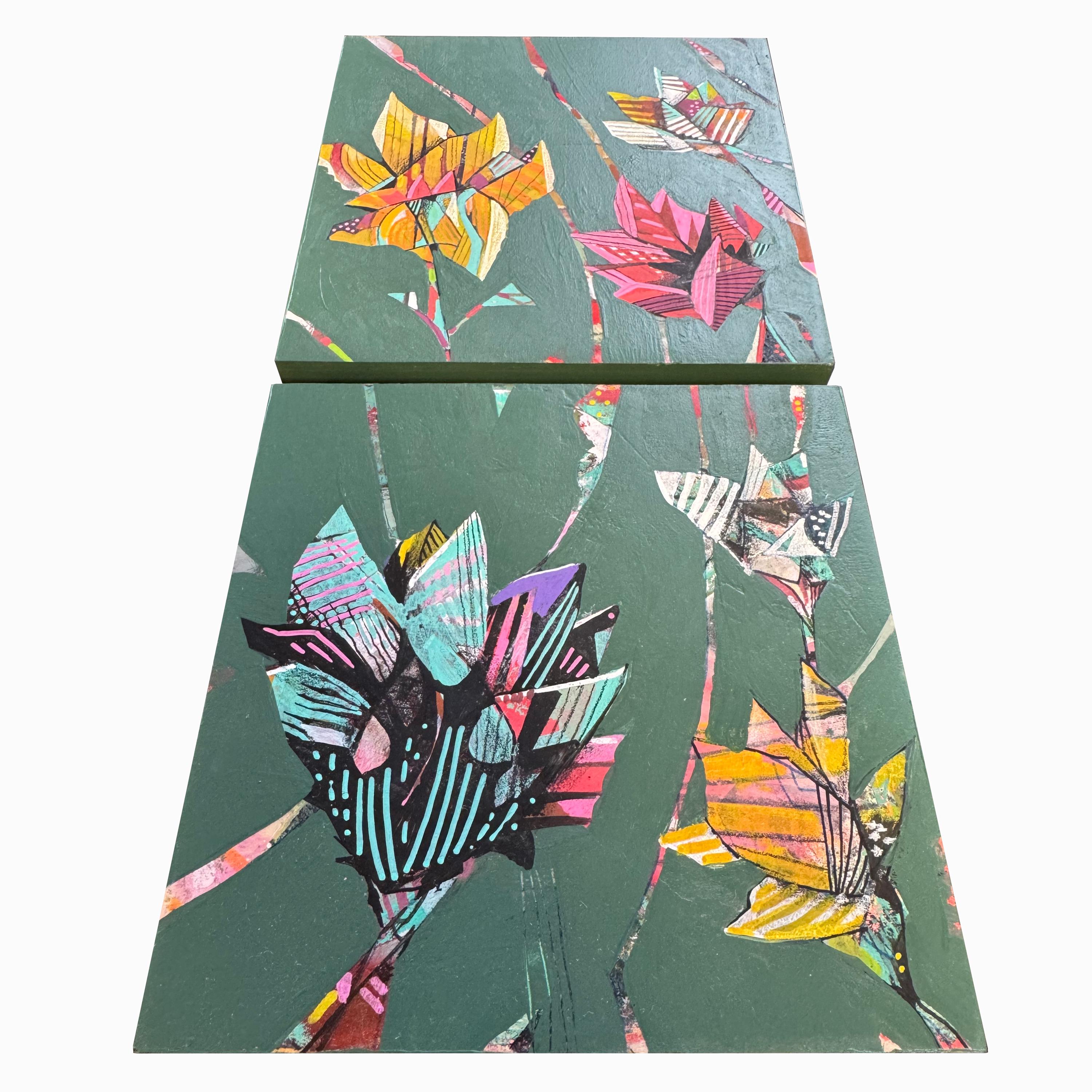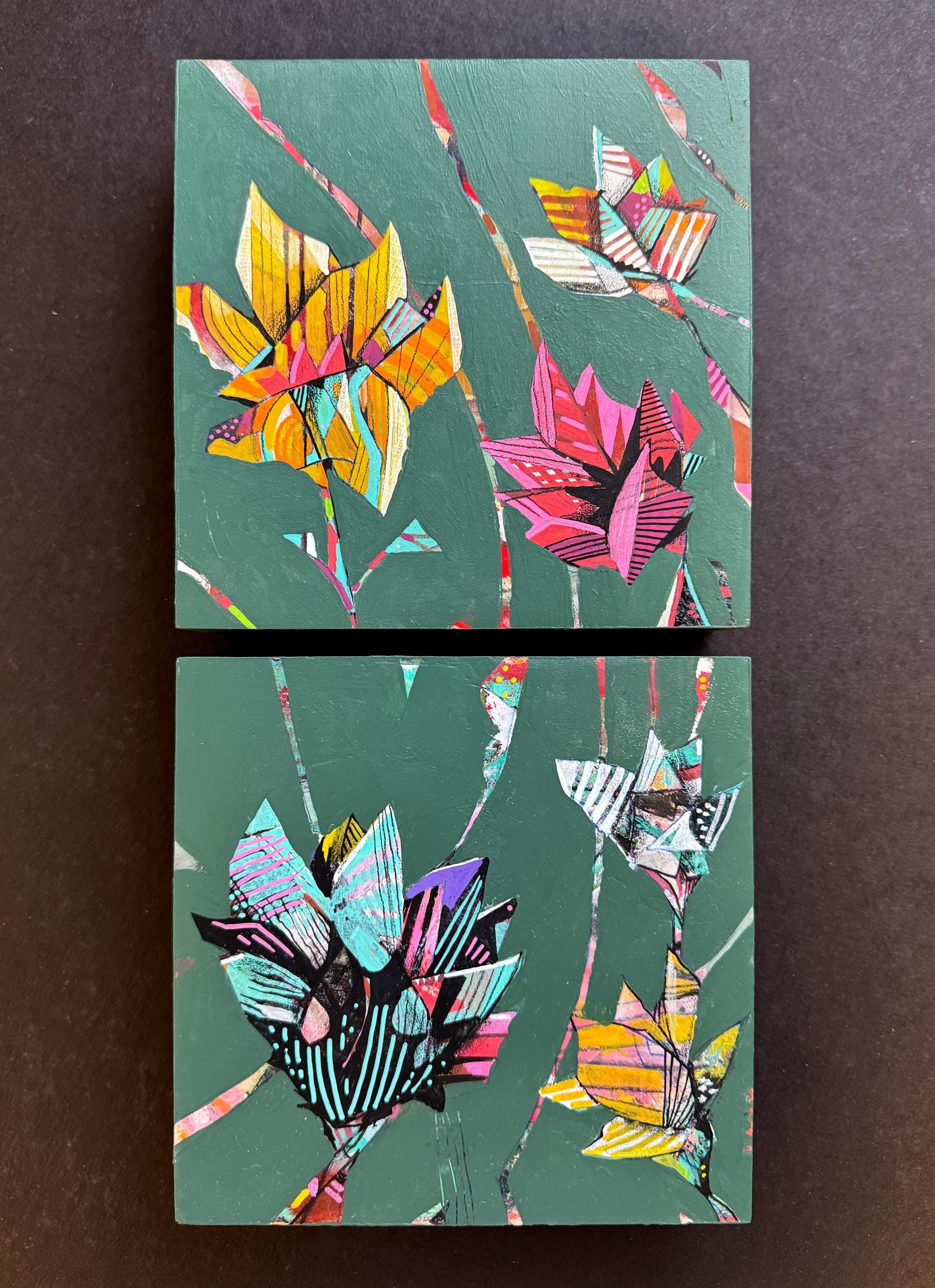 This piece consists of two 6" x 6" paintings on wood panel