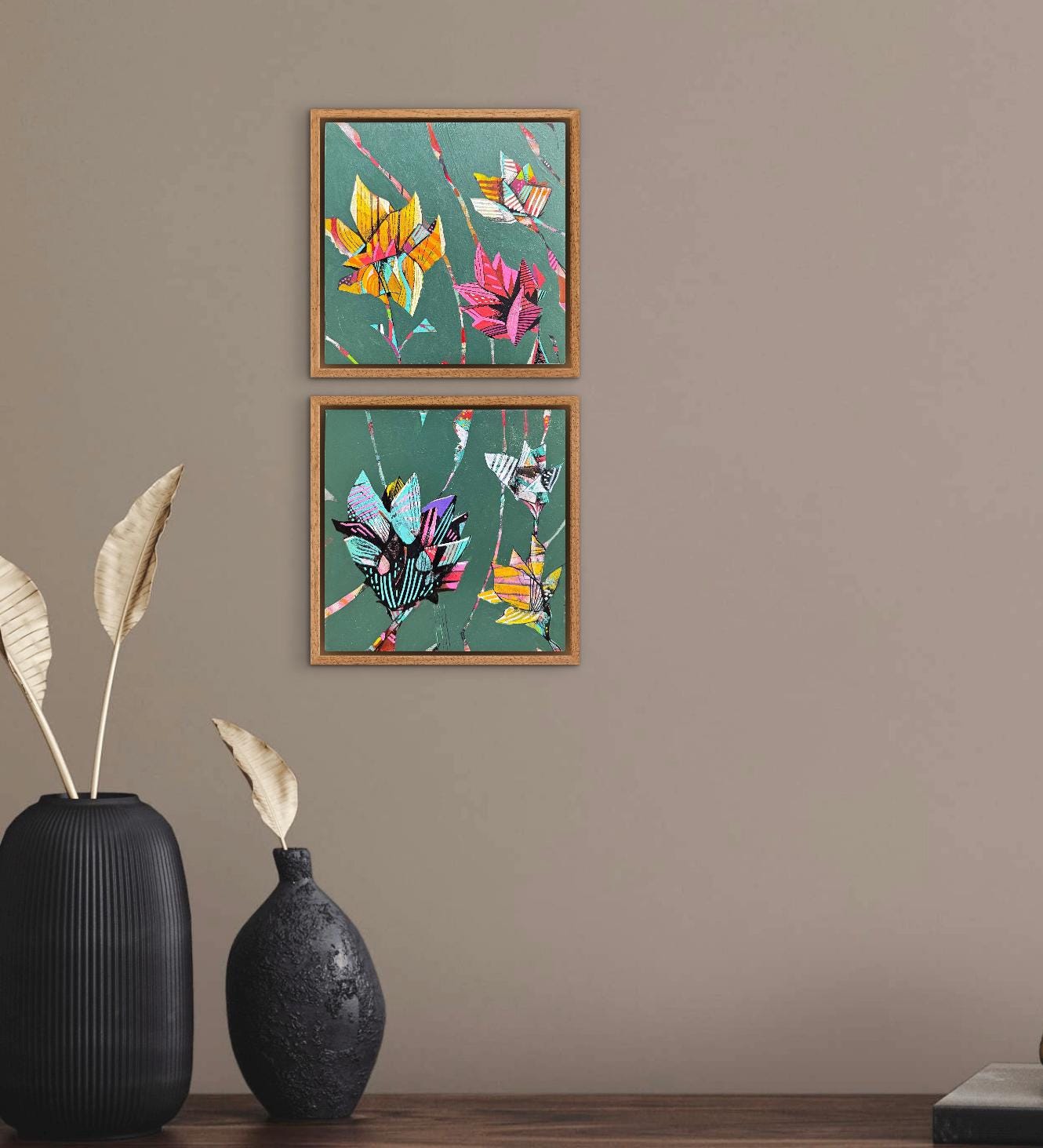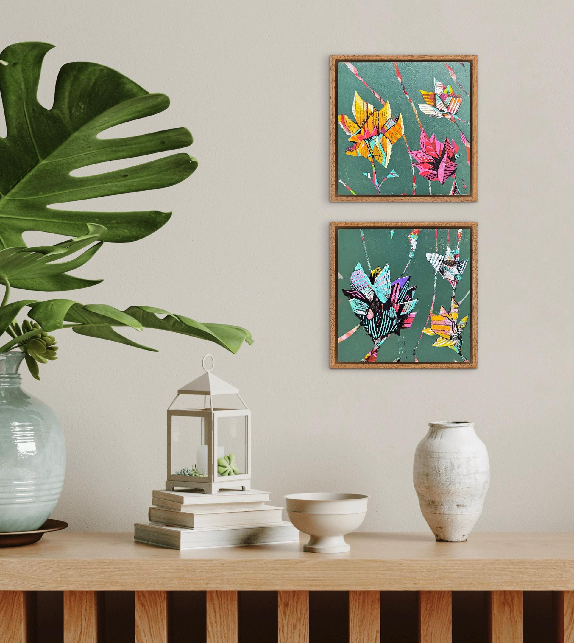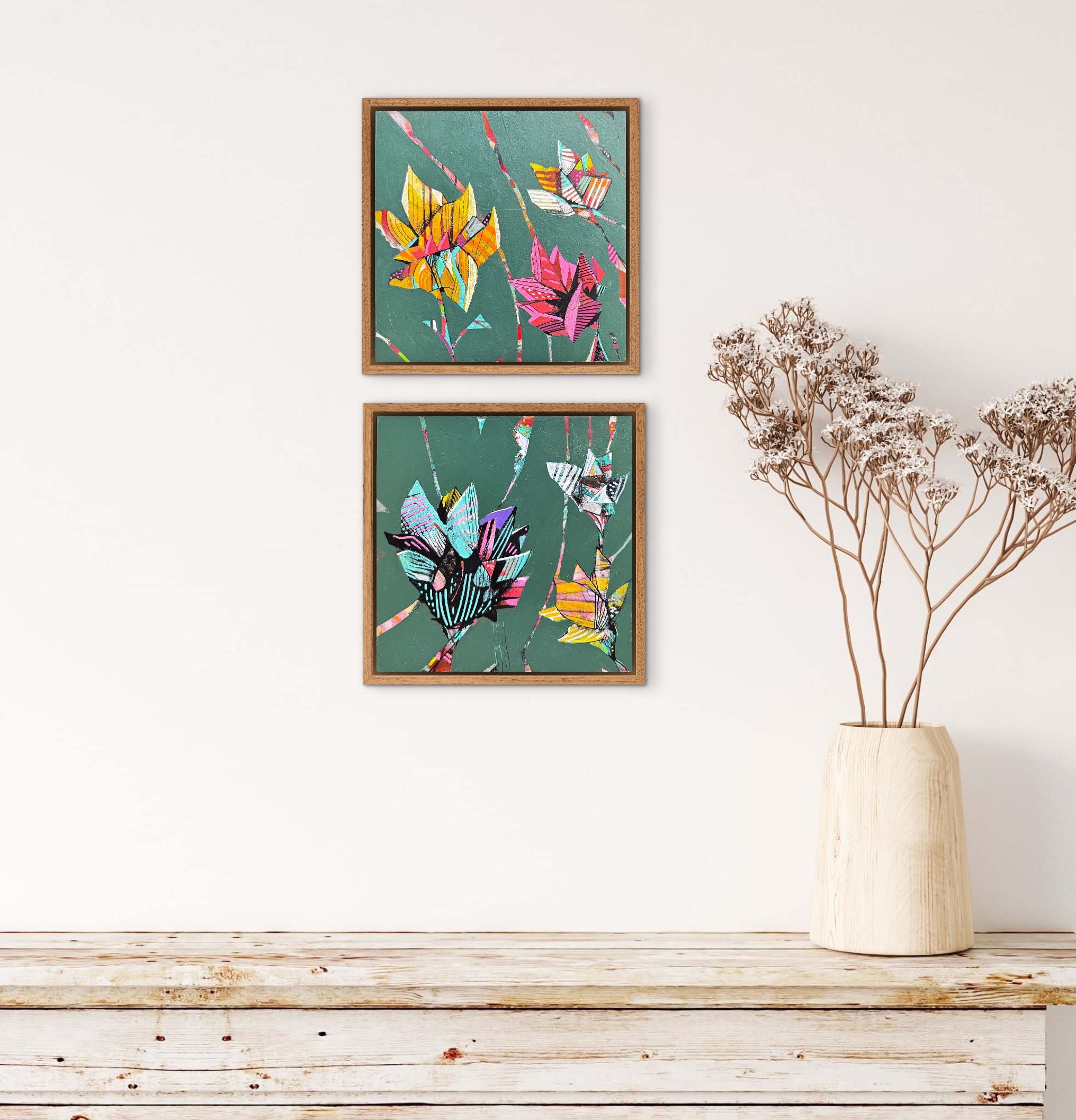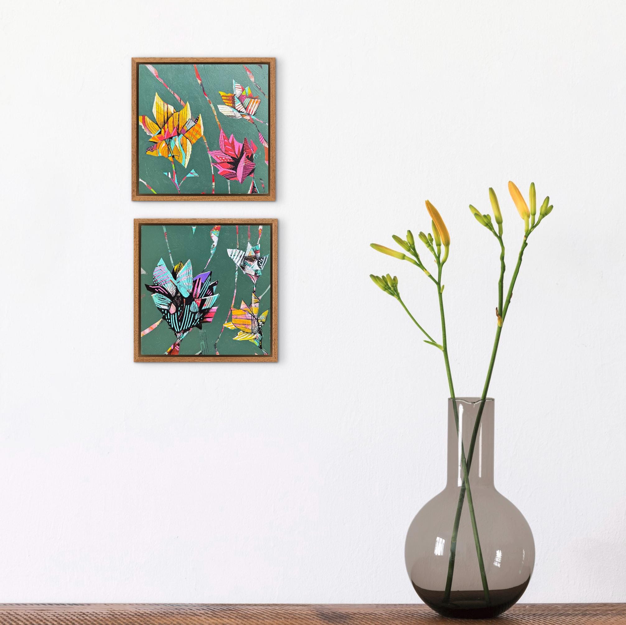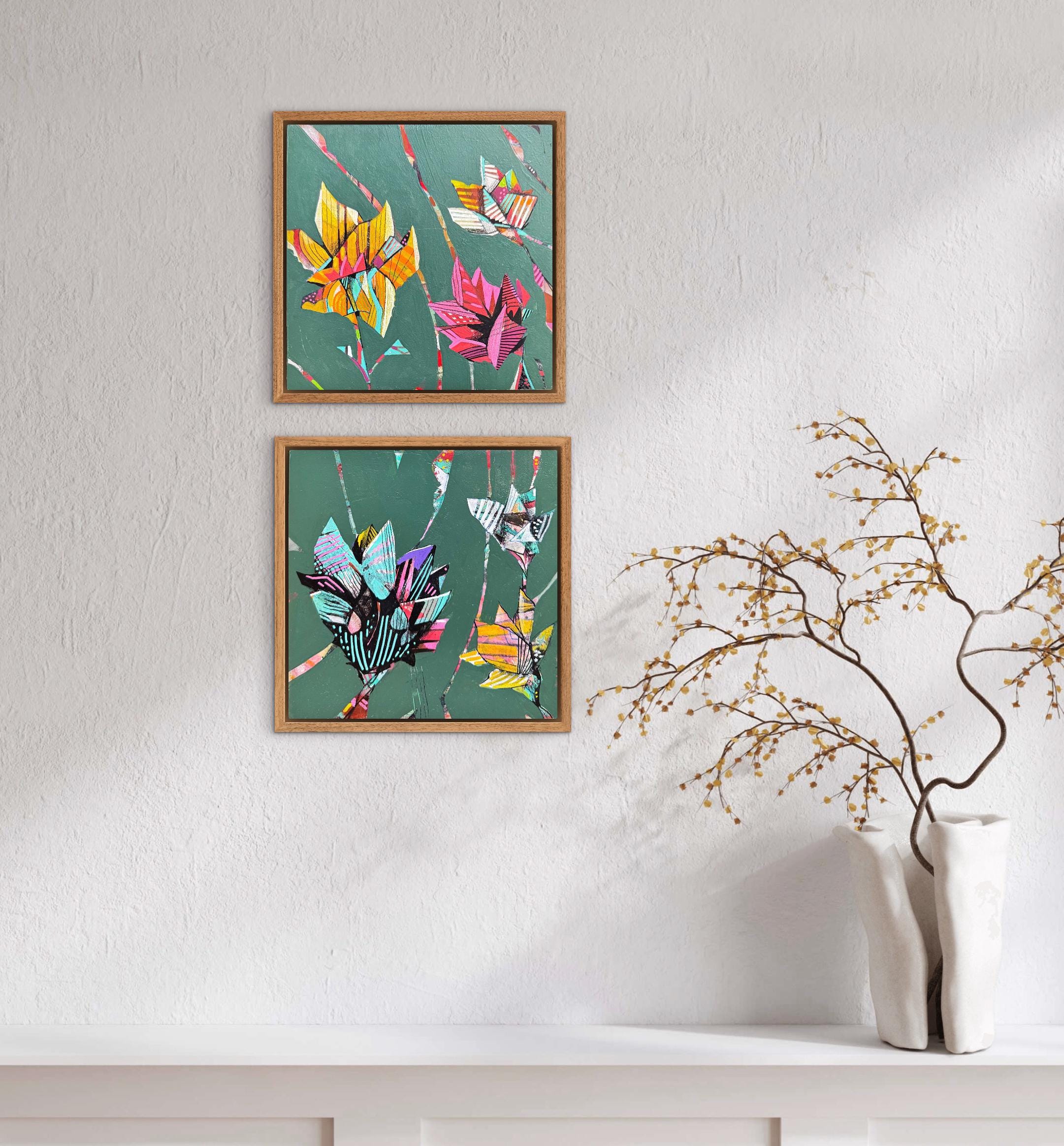 This piece consists of two 6" x 6" paintings on wood panel