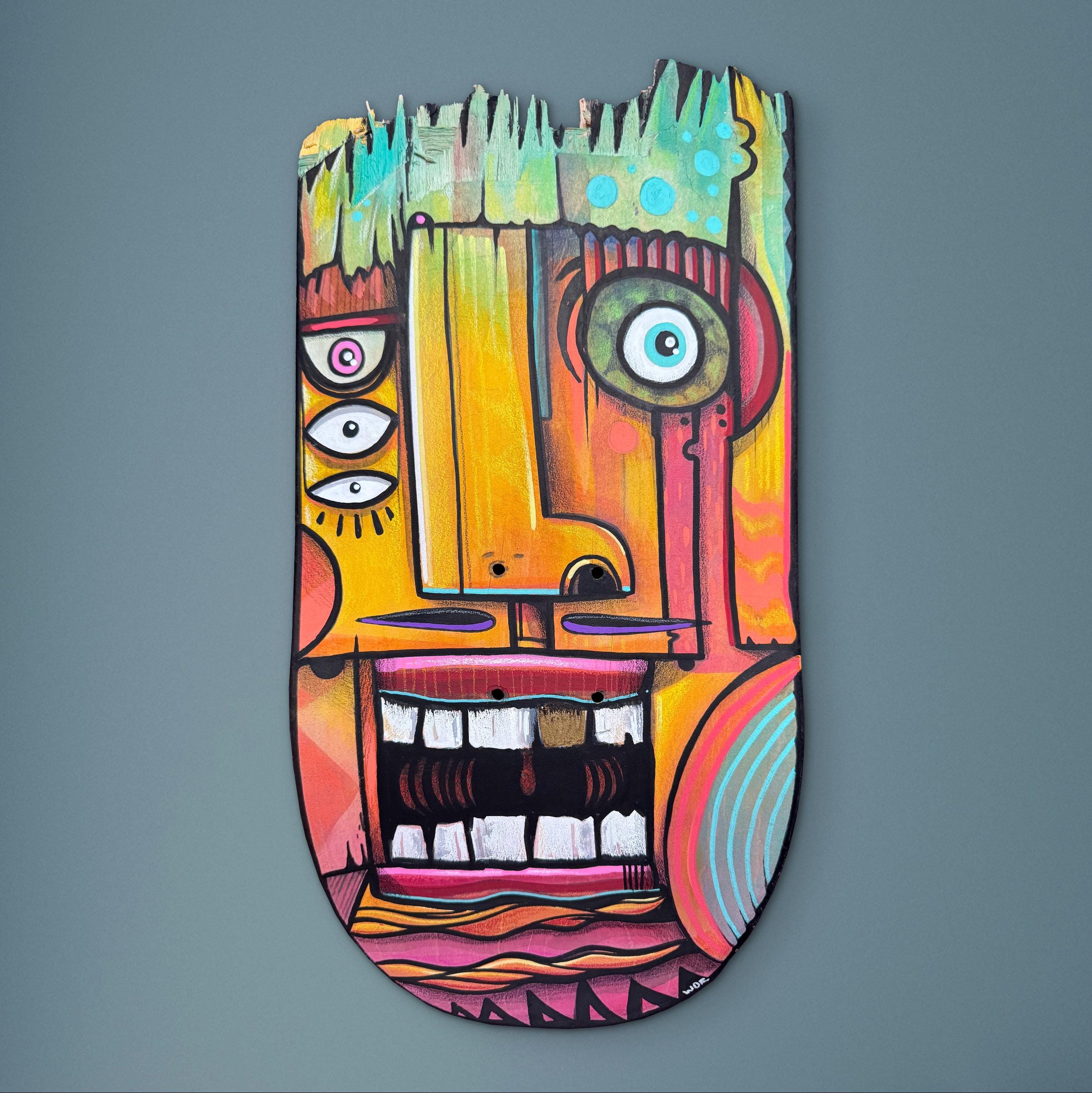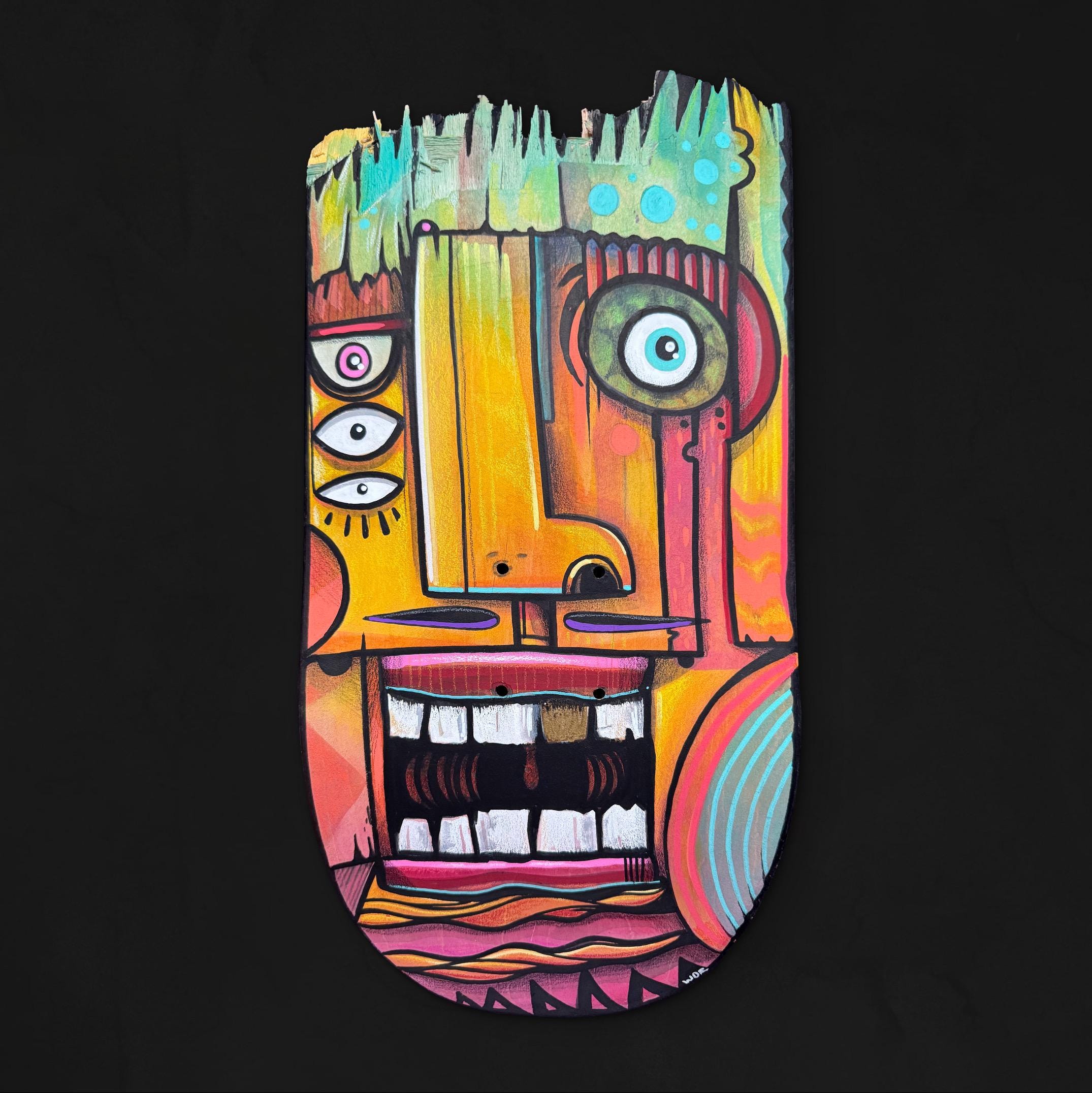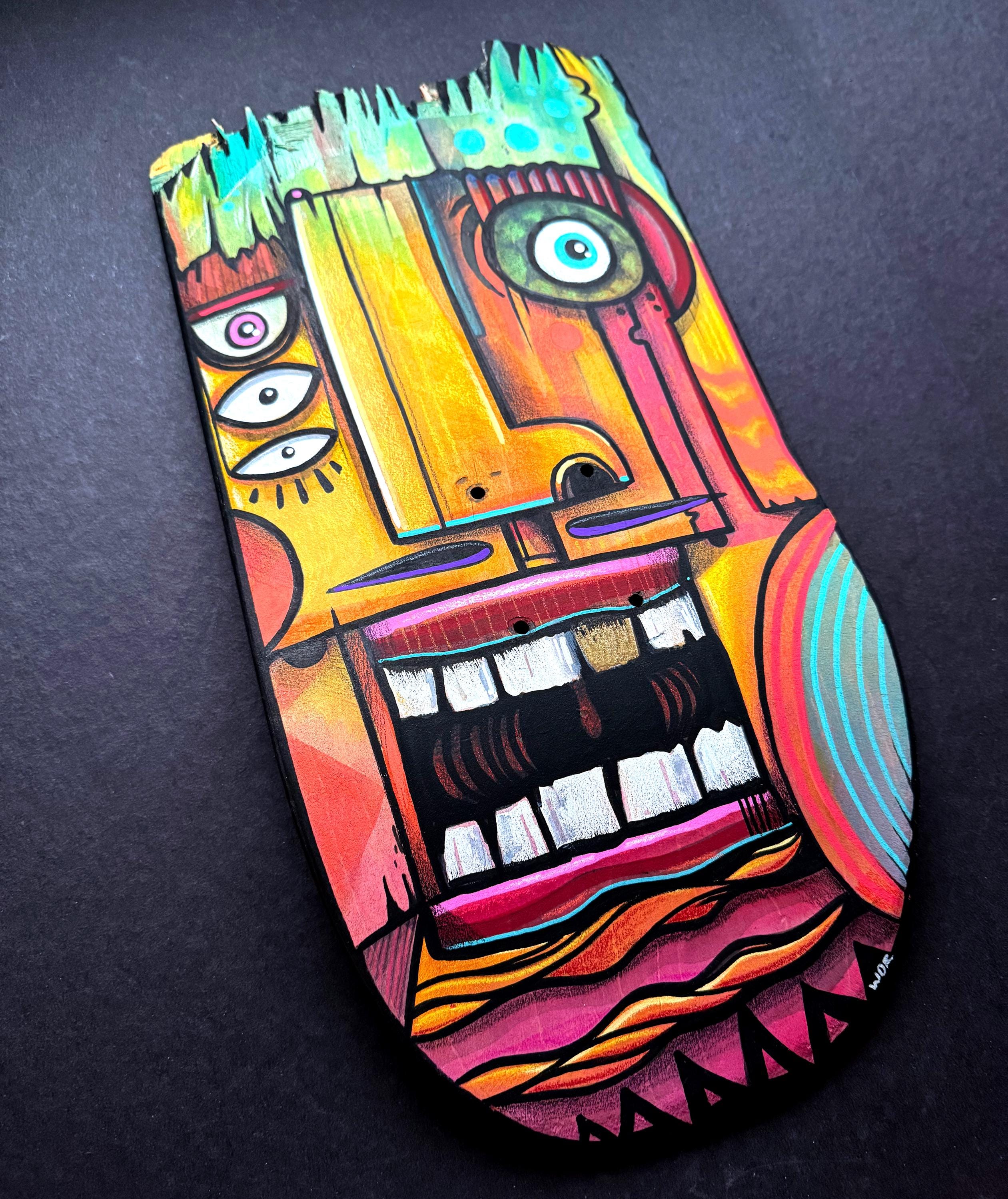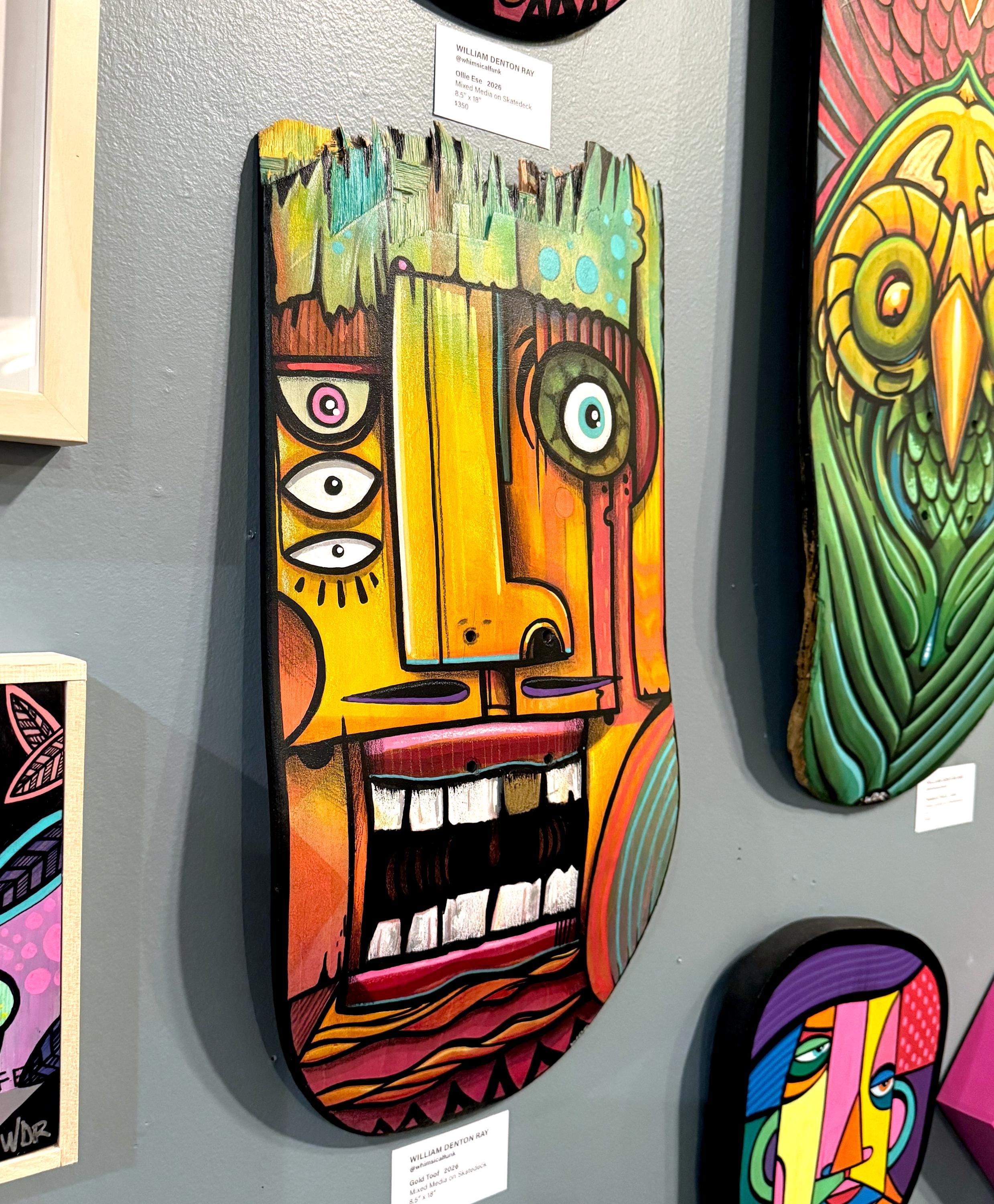NEW! Original hand painted "Gold Toof" on Broken Skate Deck
