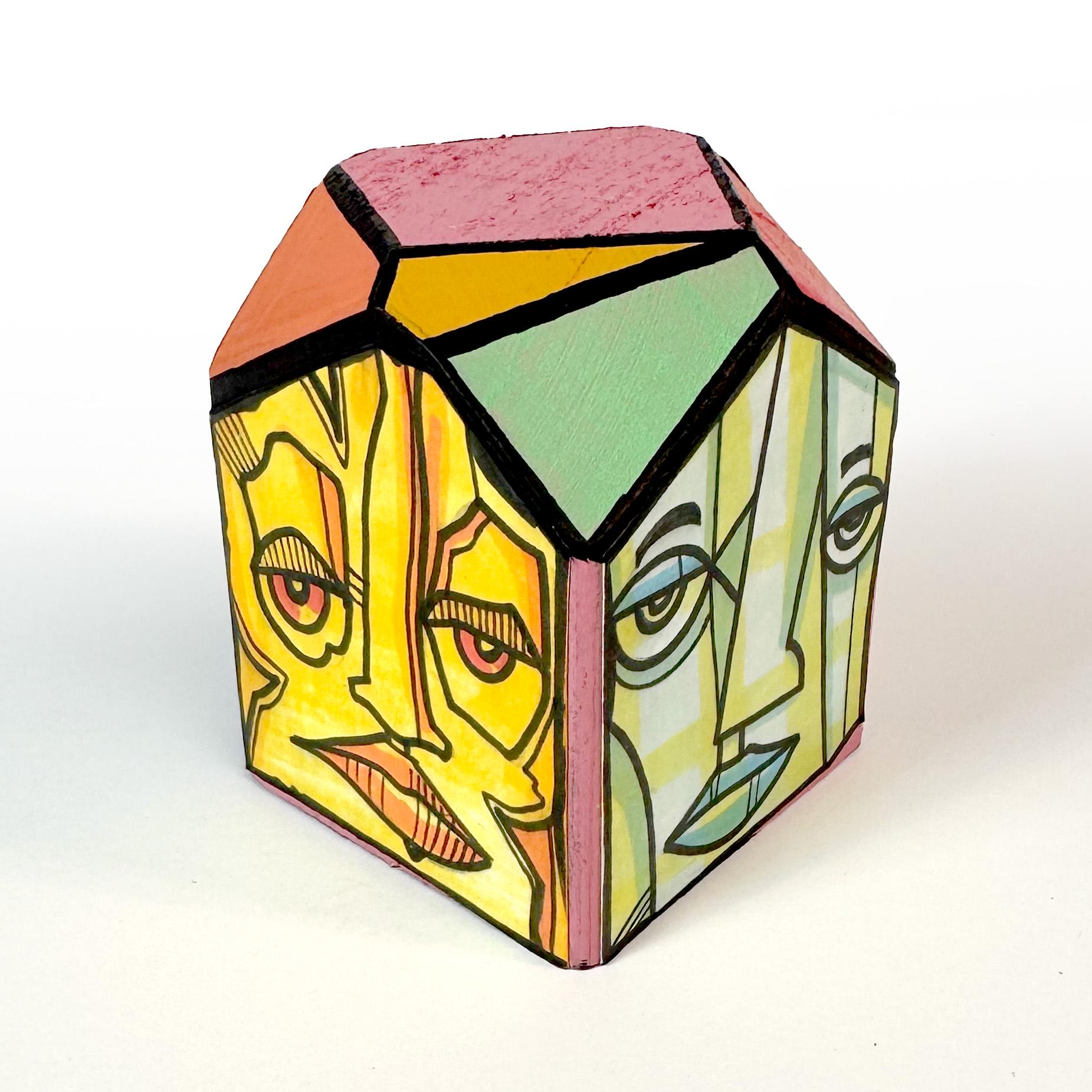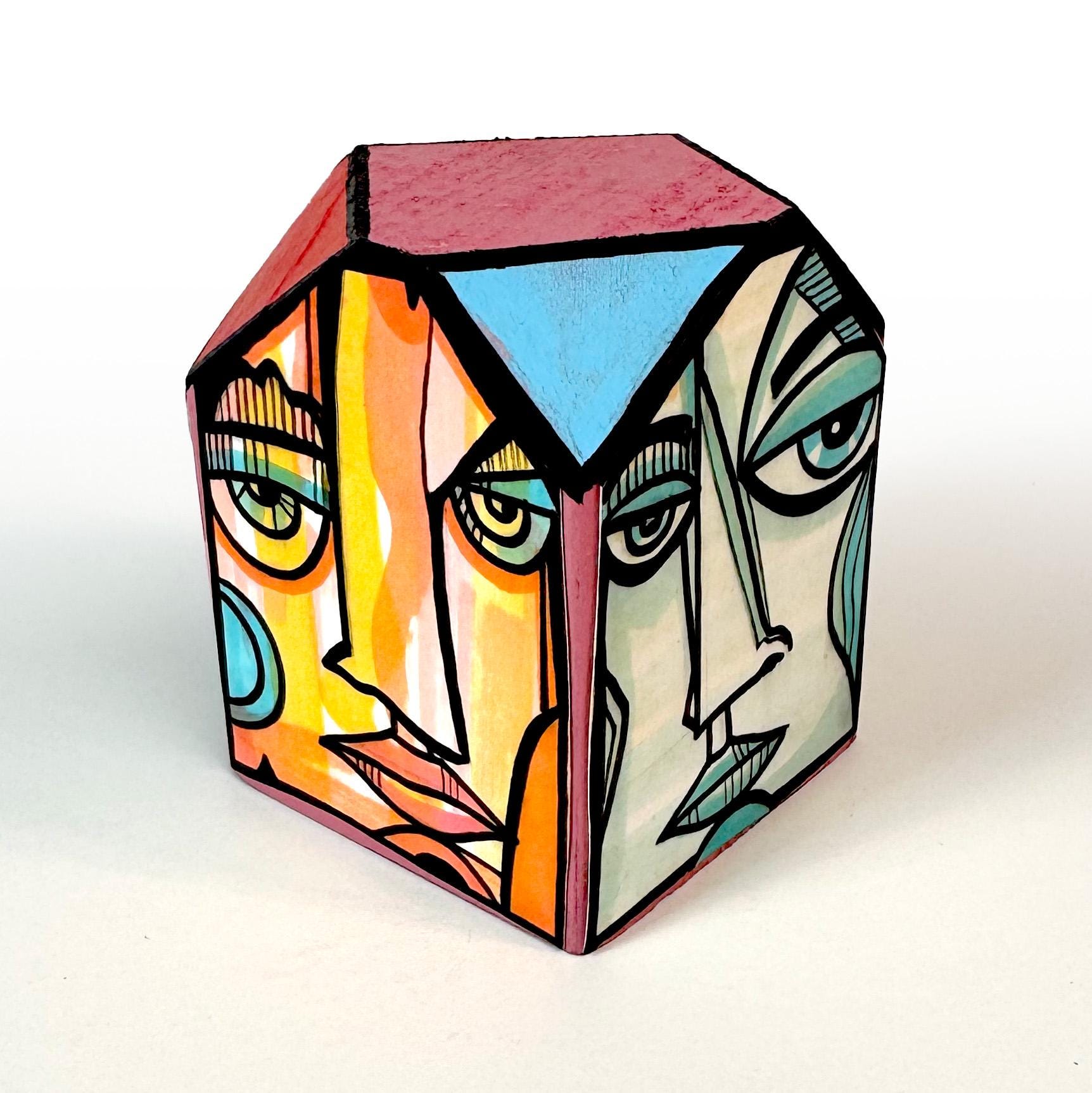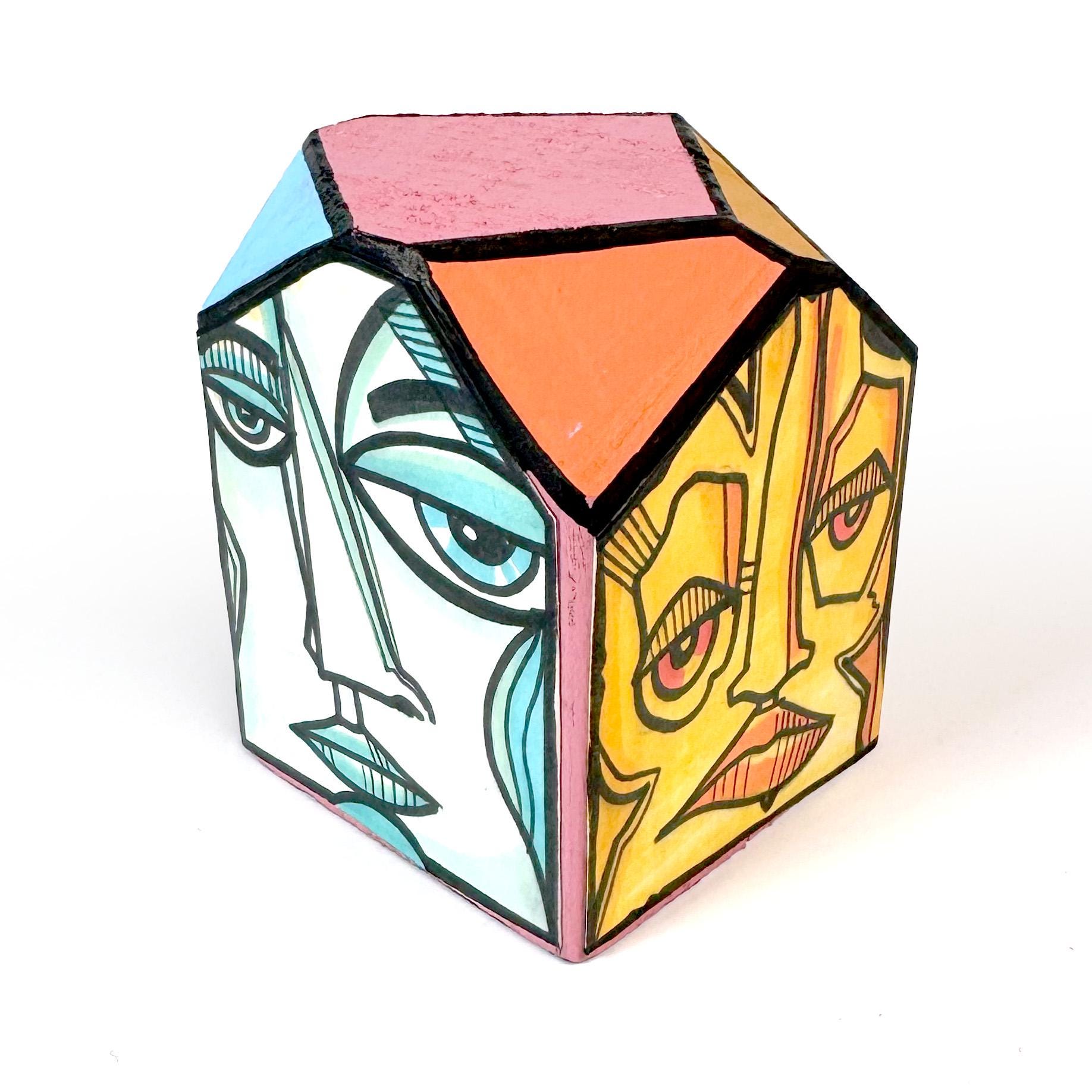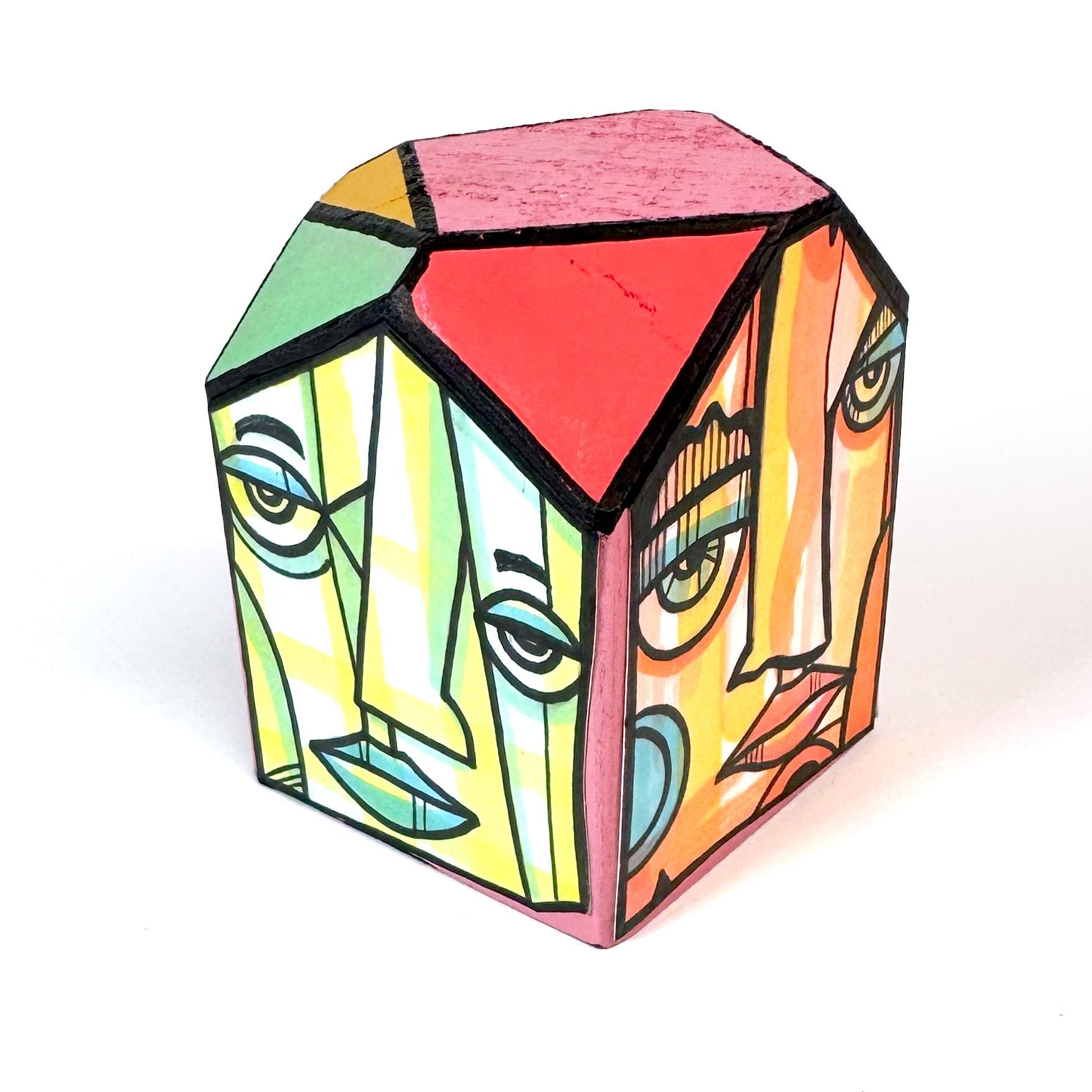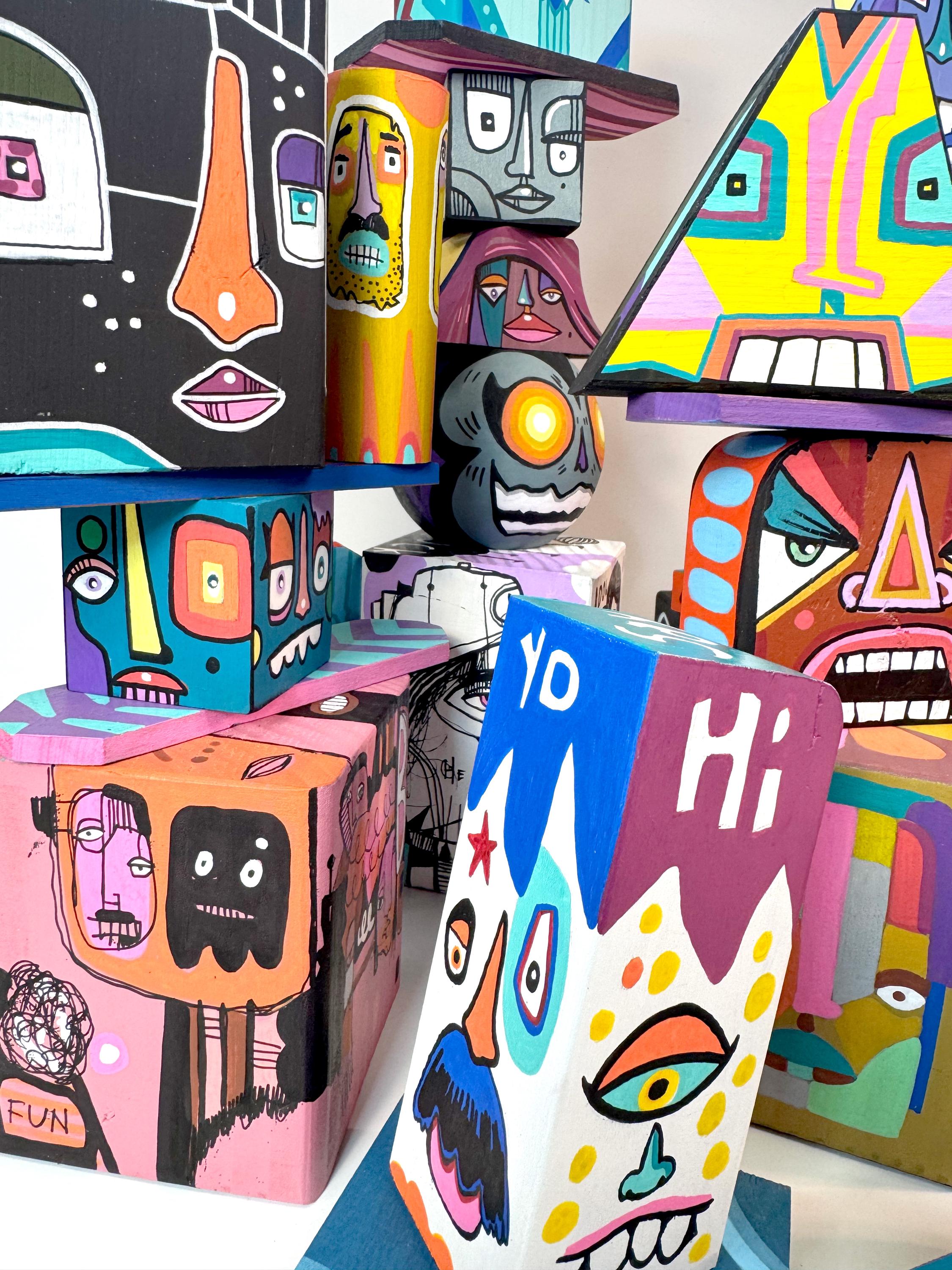 Funk Totem Parts are mixed media works of art on various sized wood blocks.