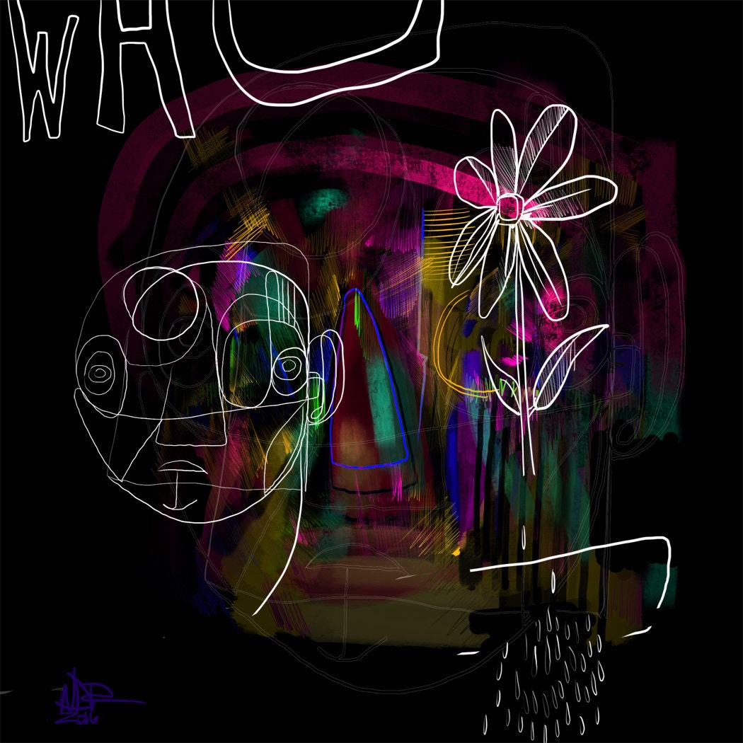 Who Flower - Original Vector Drawing - 6x6 Print on Wood - Framed - Signed and Ready to Hang