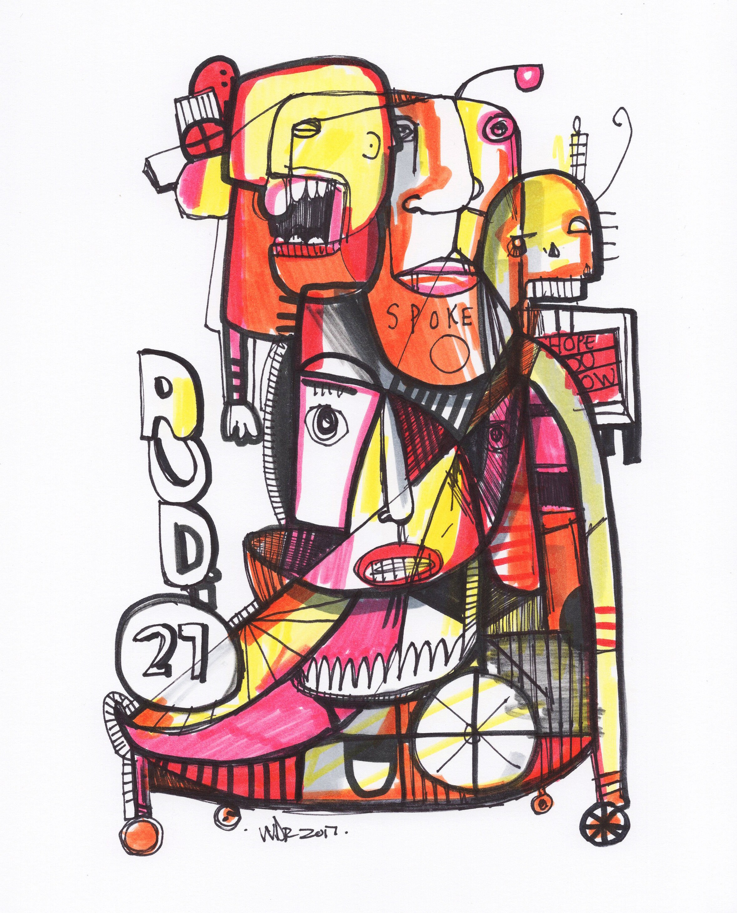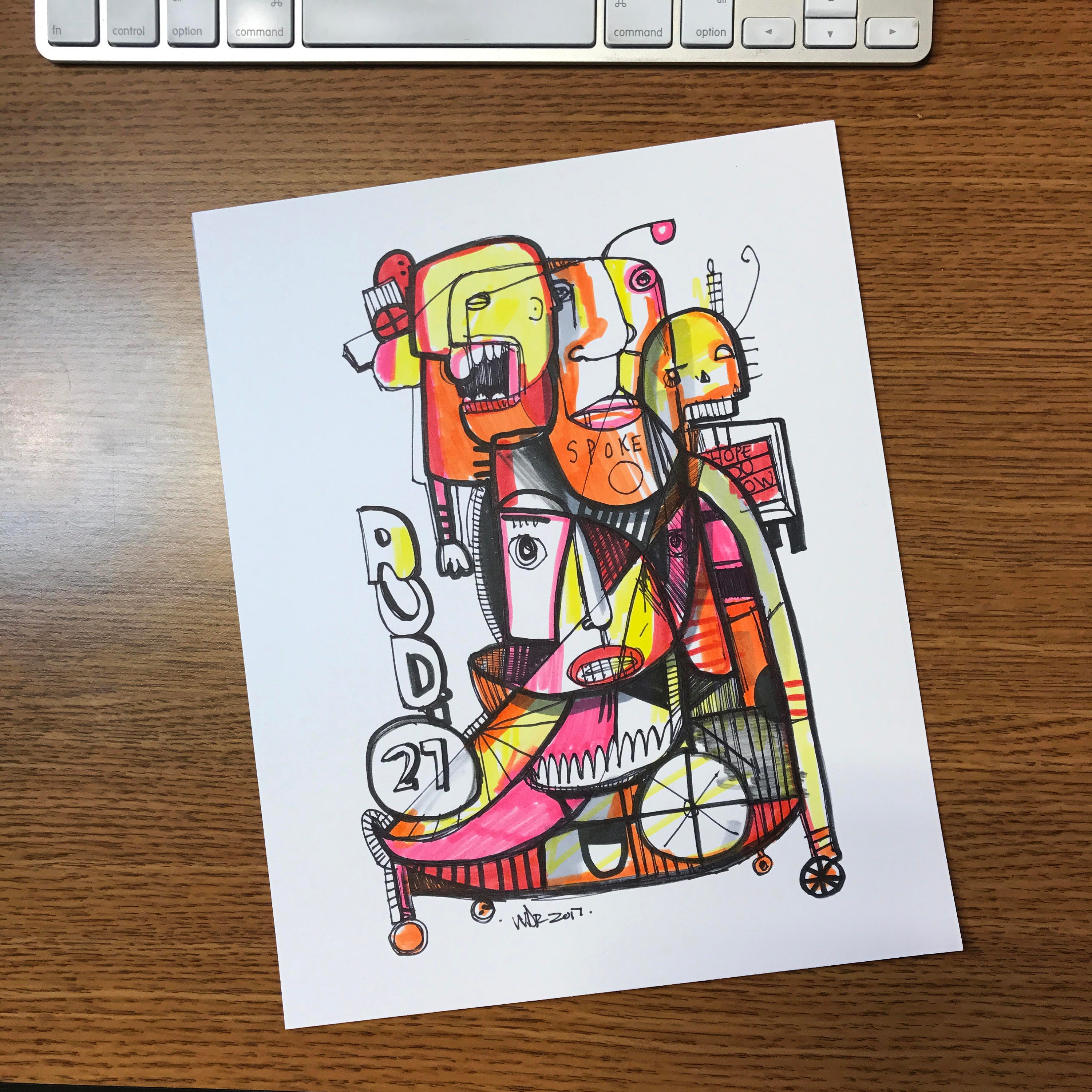 Audio 27 - Original mixed media Illustration on Bristol - 8" x 10" - Original Artwork