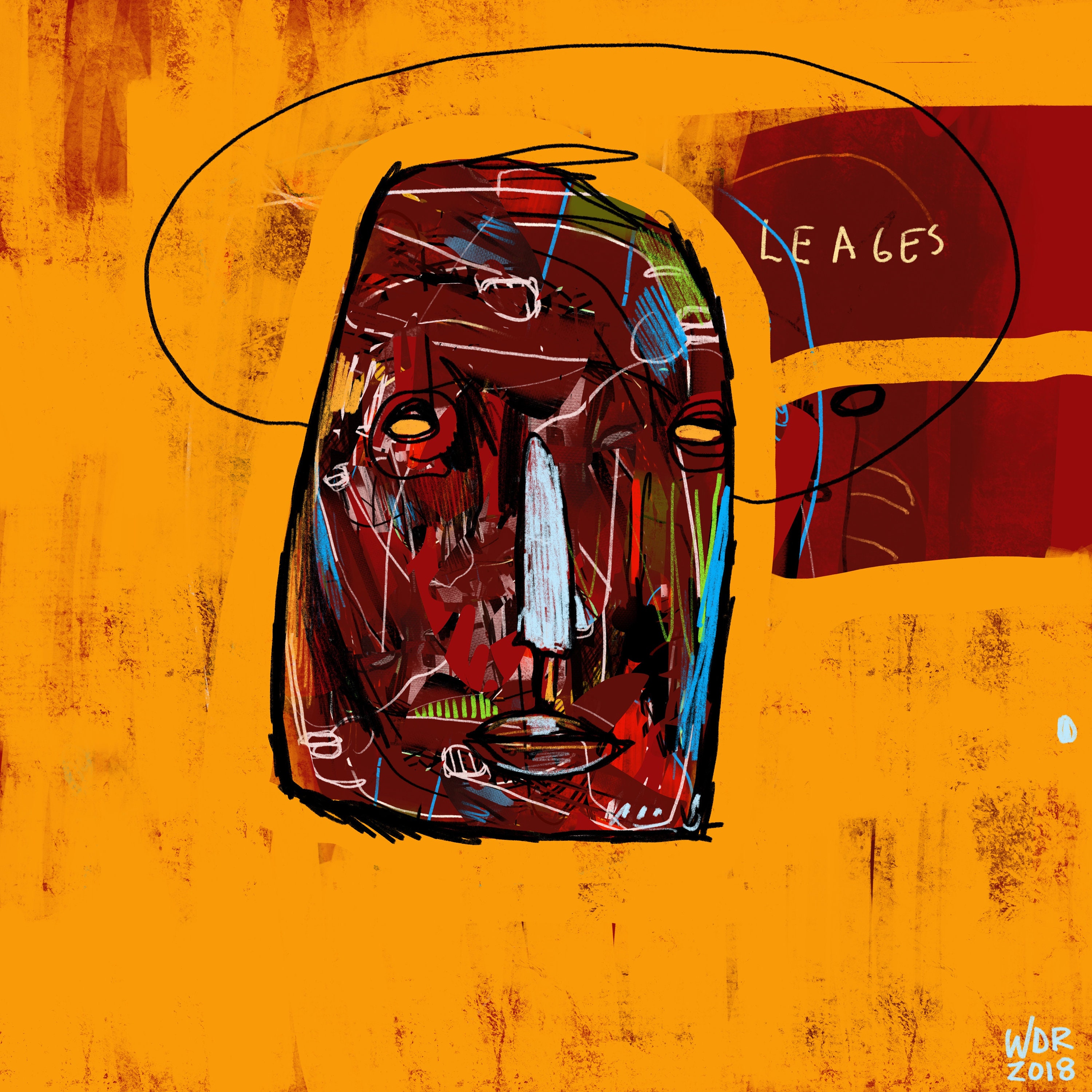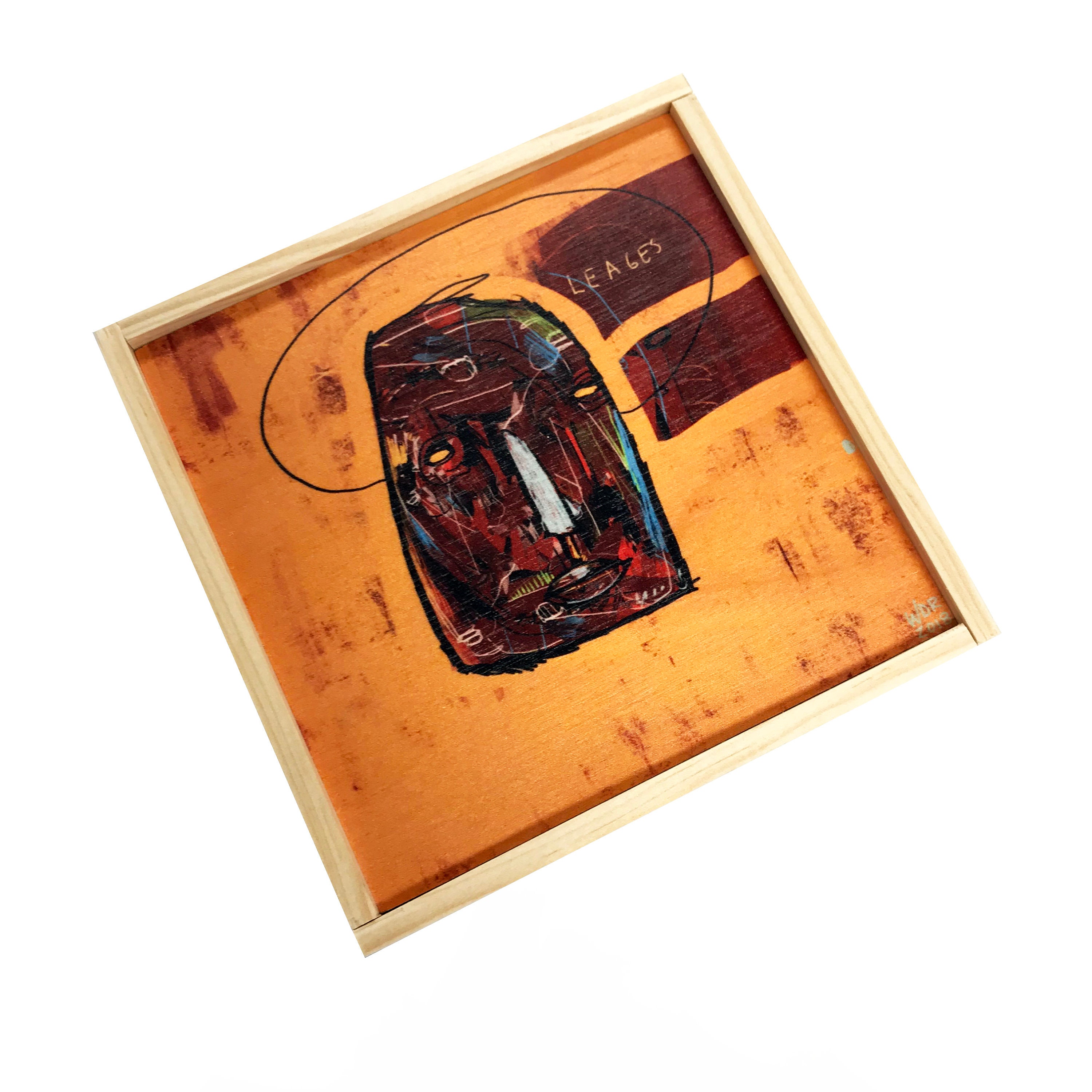 Leages - Original Digital Drawing - 5x5 Vintage Print on Wood - Framed - Signed and Ready to Hang