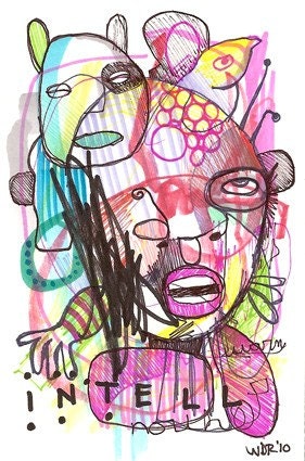 Mutual Intell - Collaboration with my Son Jazper - Original Illustration on Bristol - 4" x 6"