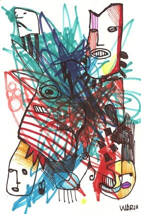 Boom Boom - Collaboration with my son Jazper - Original Illustration on Bristol 4"x6"