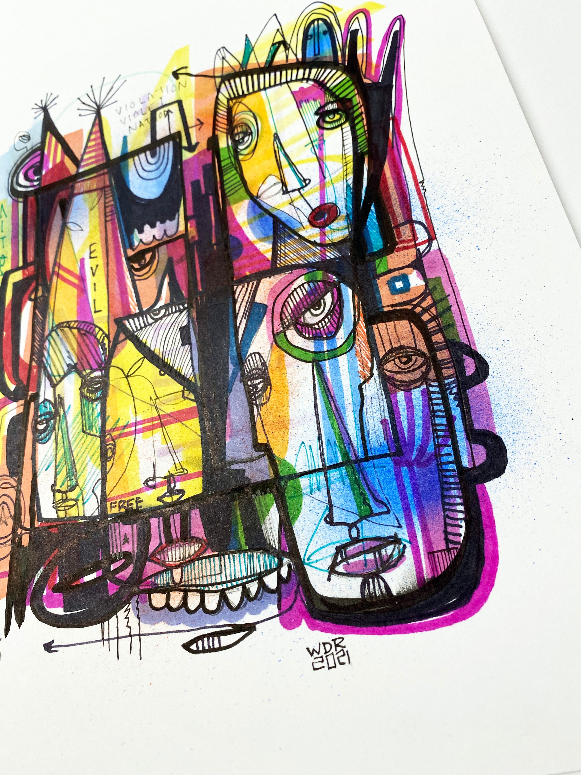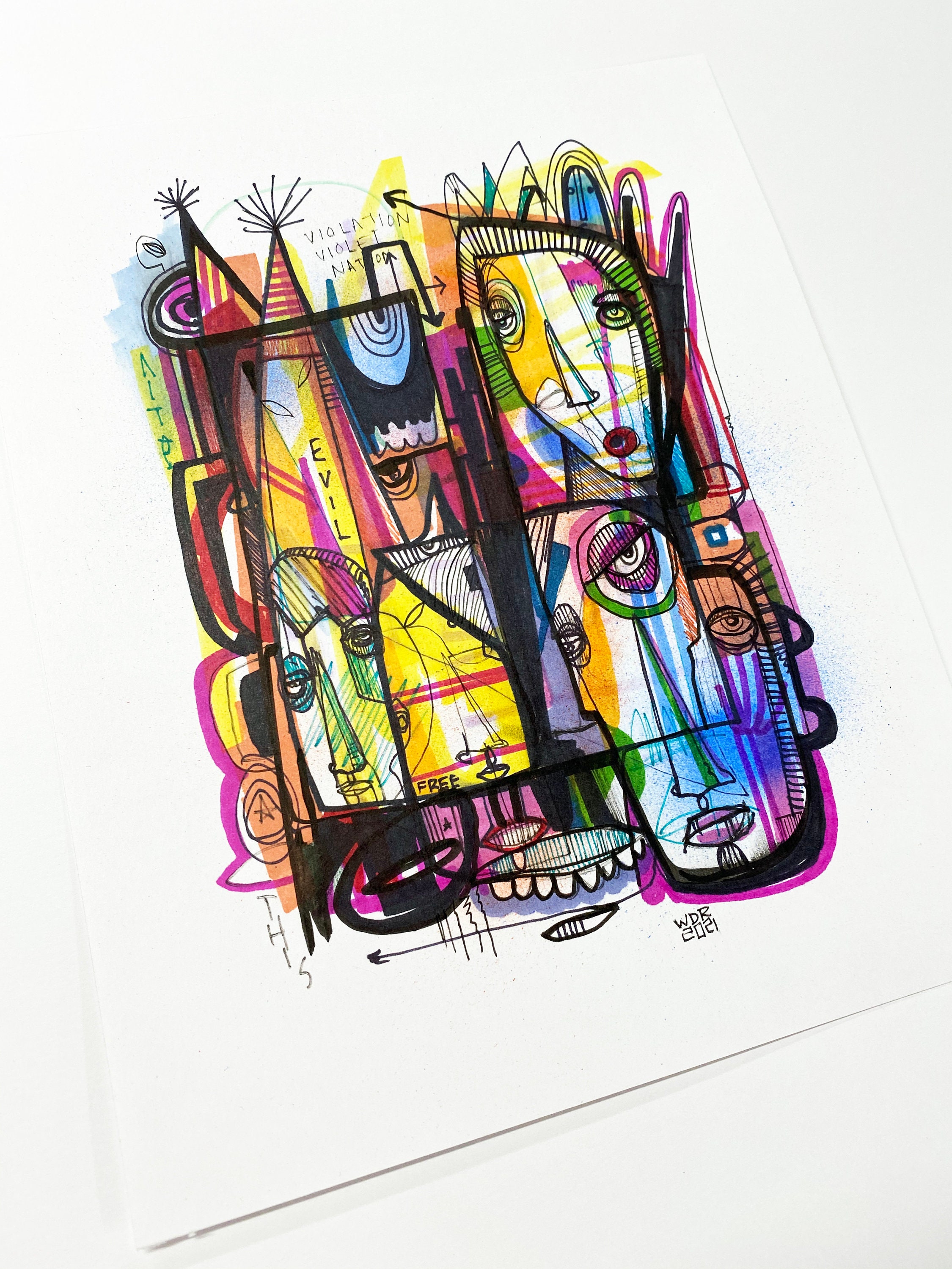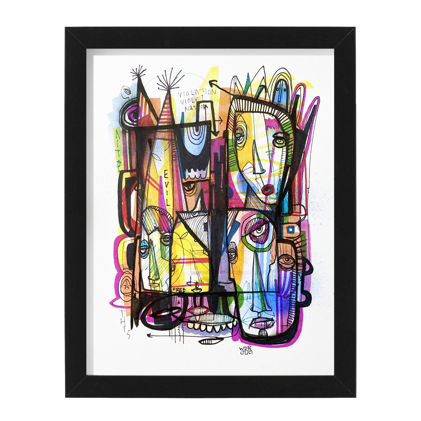 Violation (Violent Nation) - Original mixed media Illustration on Paper - 8" x 10"