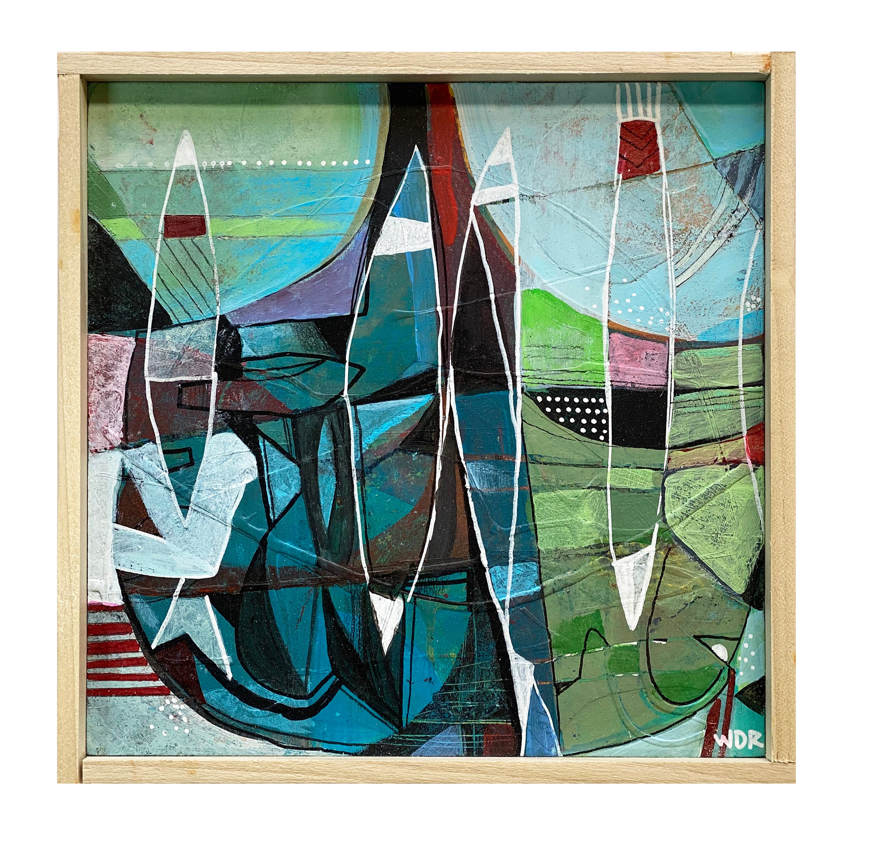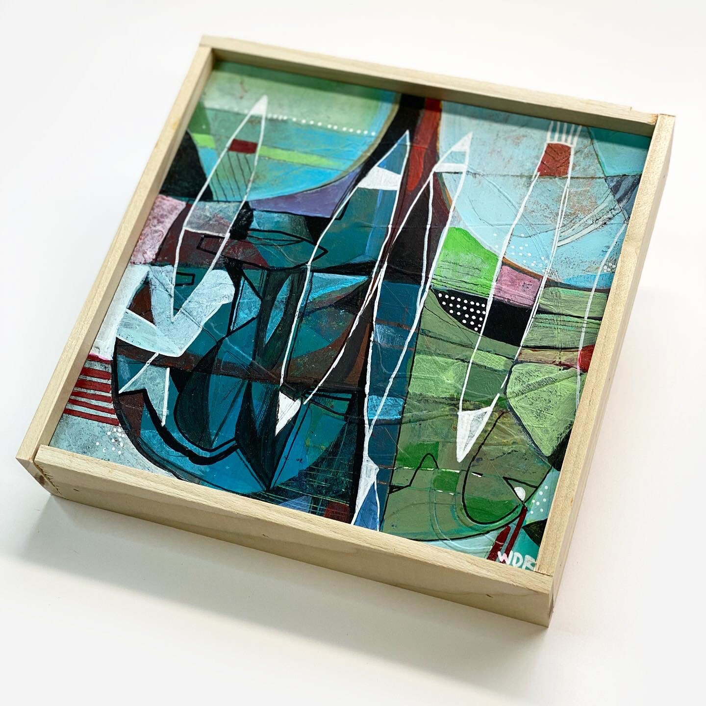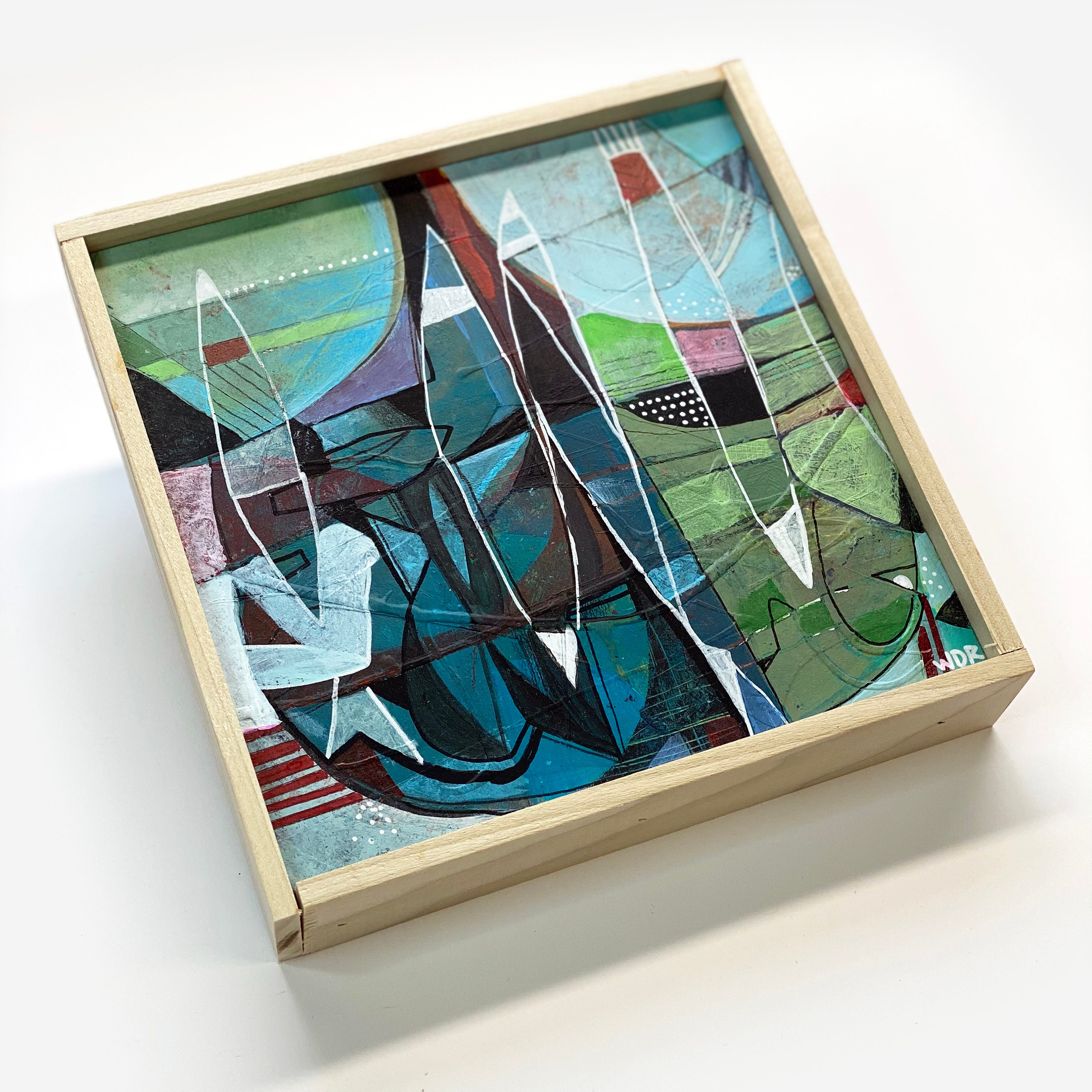 Original mixed media painting on 7" x 7" on wood panel